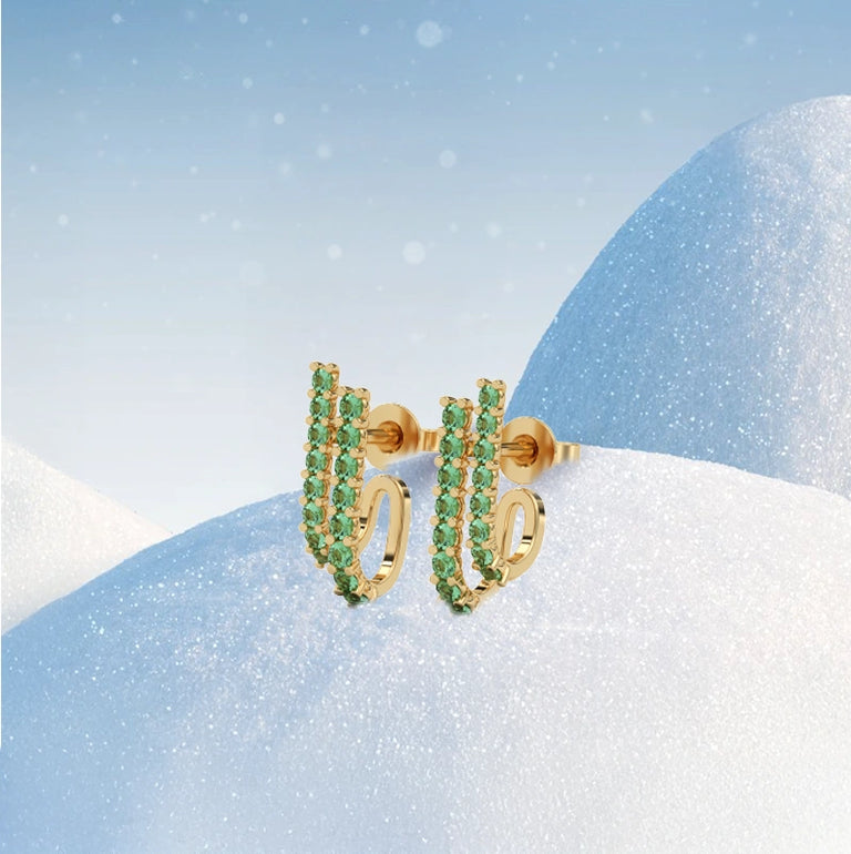 • Emerald Charm Hoops in 18KT Gold Vermeil and 925 Sterling Silver, featuring vibrant emerald-cut green stones. Emerald Charm Hoops