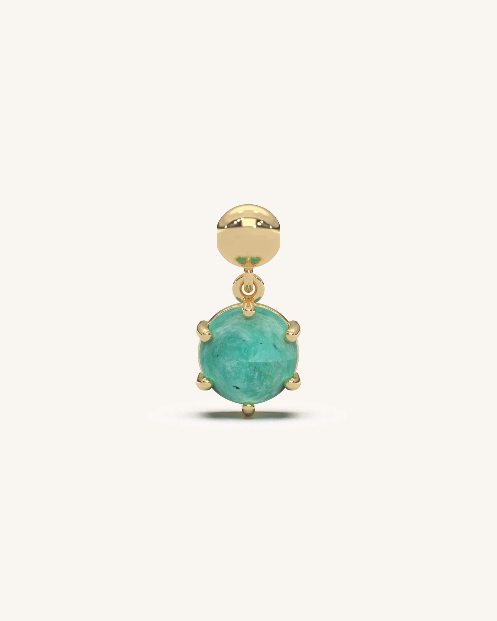 Delicate 925 Sterling Silver With 18KT Gold Vermeil charm with a glossy mint-hued round stone held in a soft claw setting.