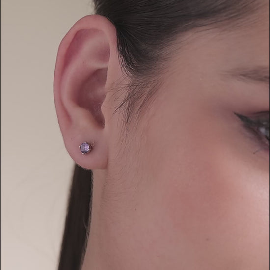 Elegant purple amethyst studs featuBand a timeless round silhouette. Lightweight and versatile, perfect for daily styling or gifting.