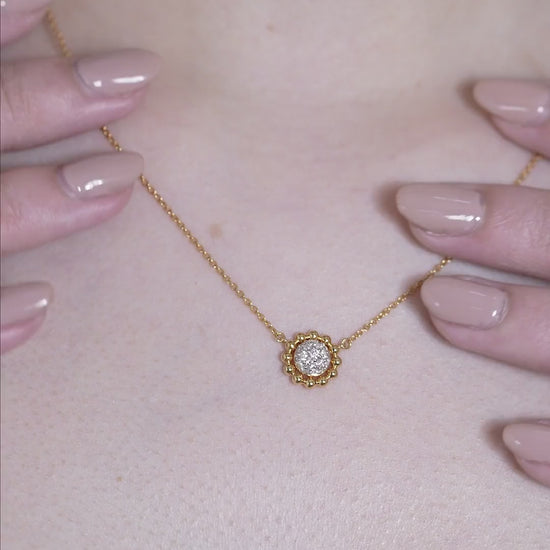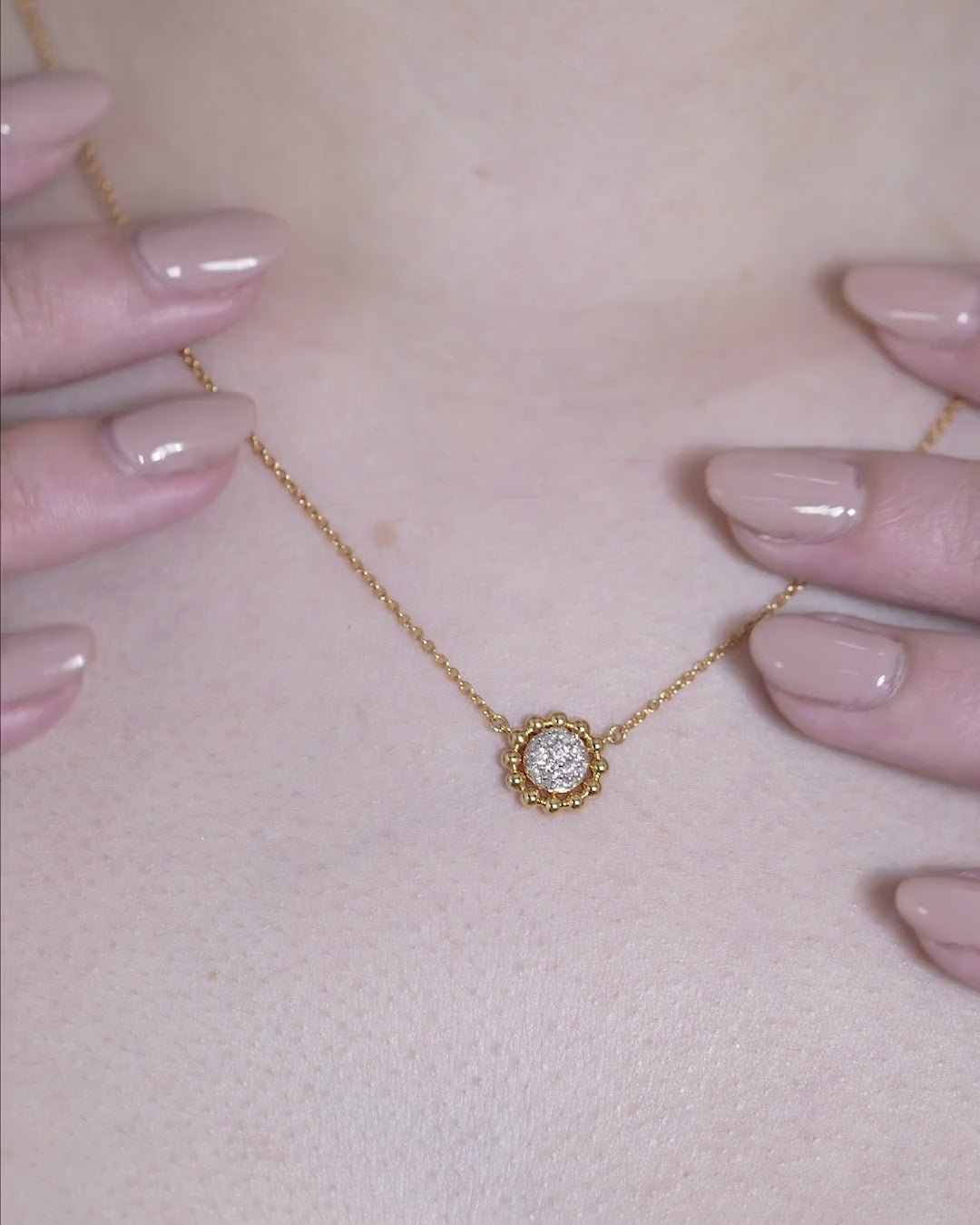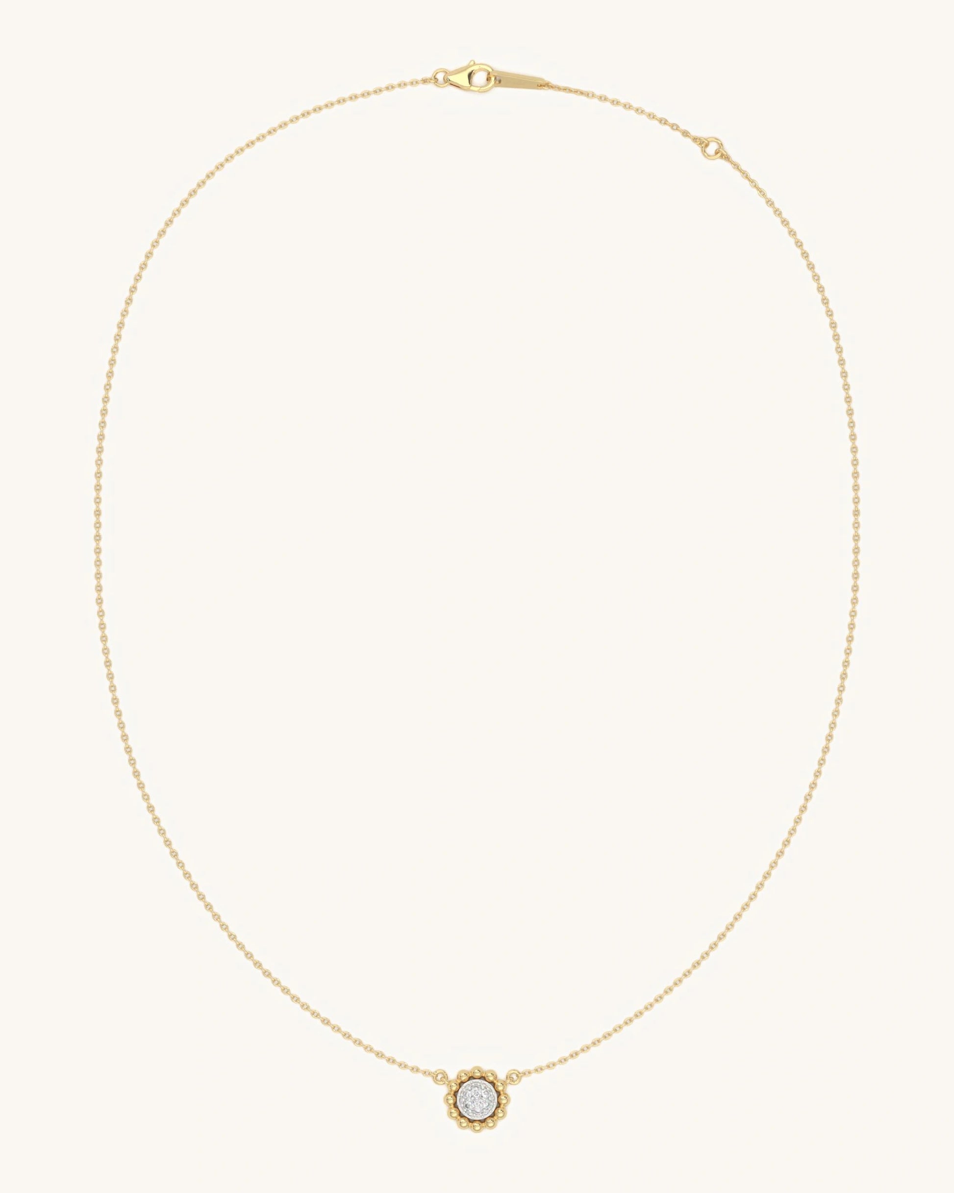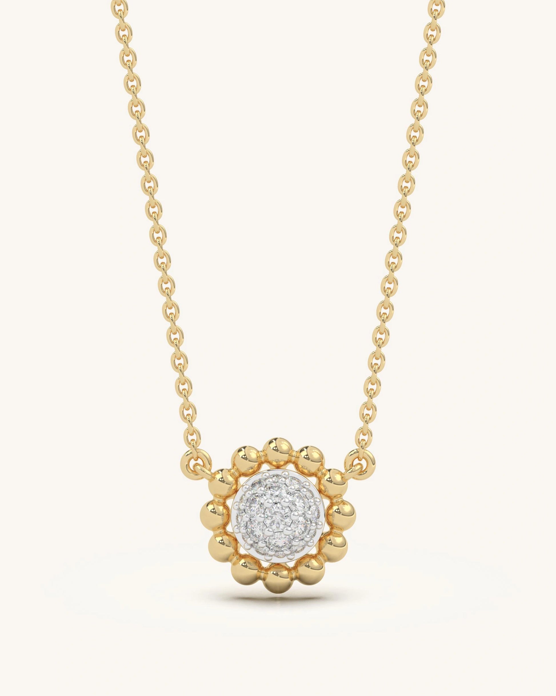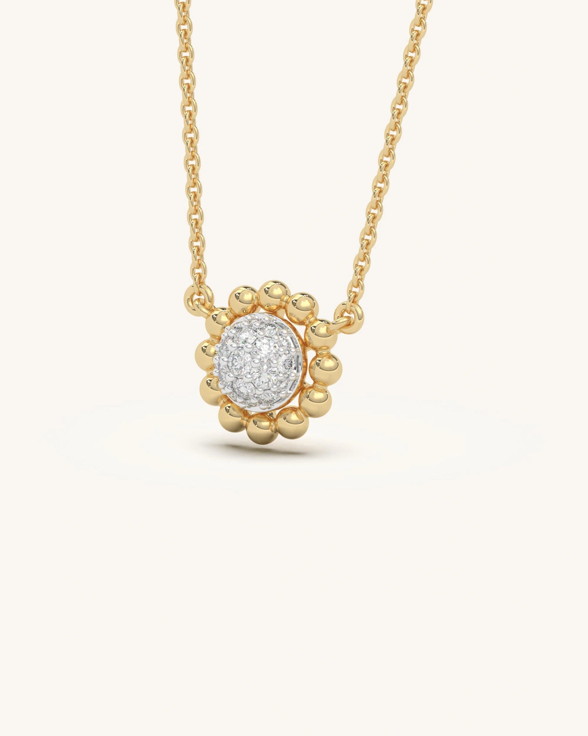 Crafted in 925 silver and finished with a soft golden tone, this necklace features lab-created moissanite diamonds that shine with clarity and brilliance. Its lightweight construction and minimal form make it ideal for both casual and formal settings. The beads and central cluster offer a touch of dimension, giving it a refined yet modern style.