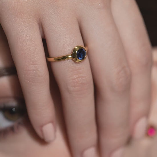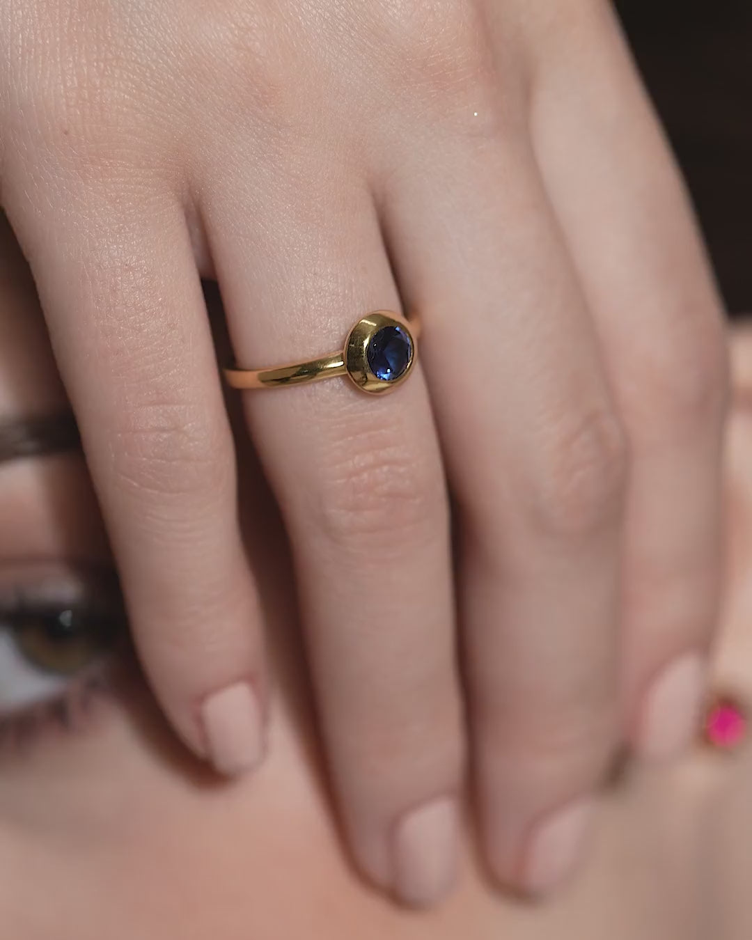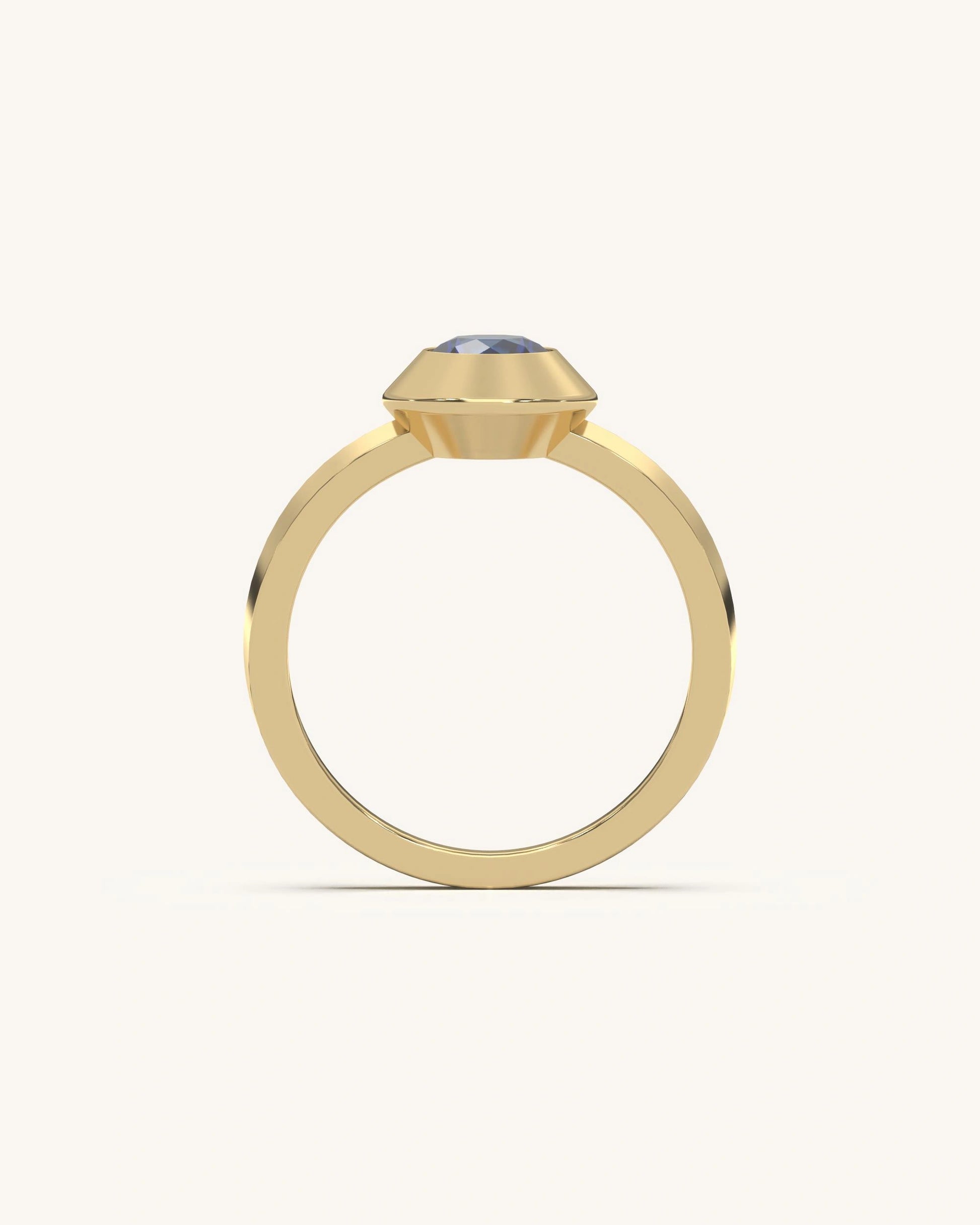 Made in 925 silver and finished with a smooth bezel frame. No moissanite; features only a single colorstone.