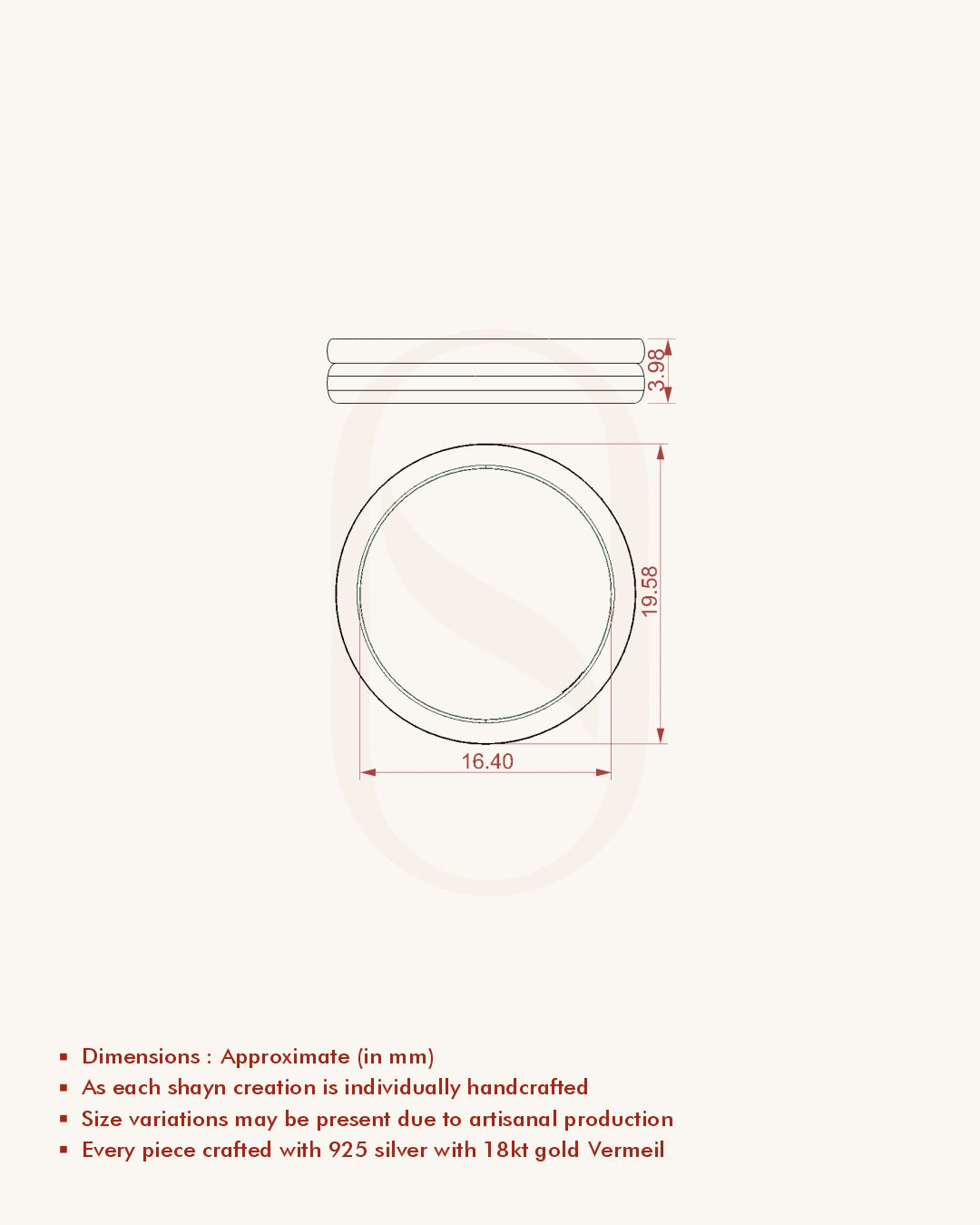 | Metal | 18KT Gold Vermeil (2.5 Microns Gold Layer on 925 Silver) |