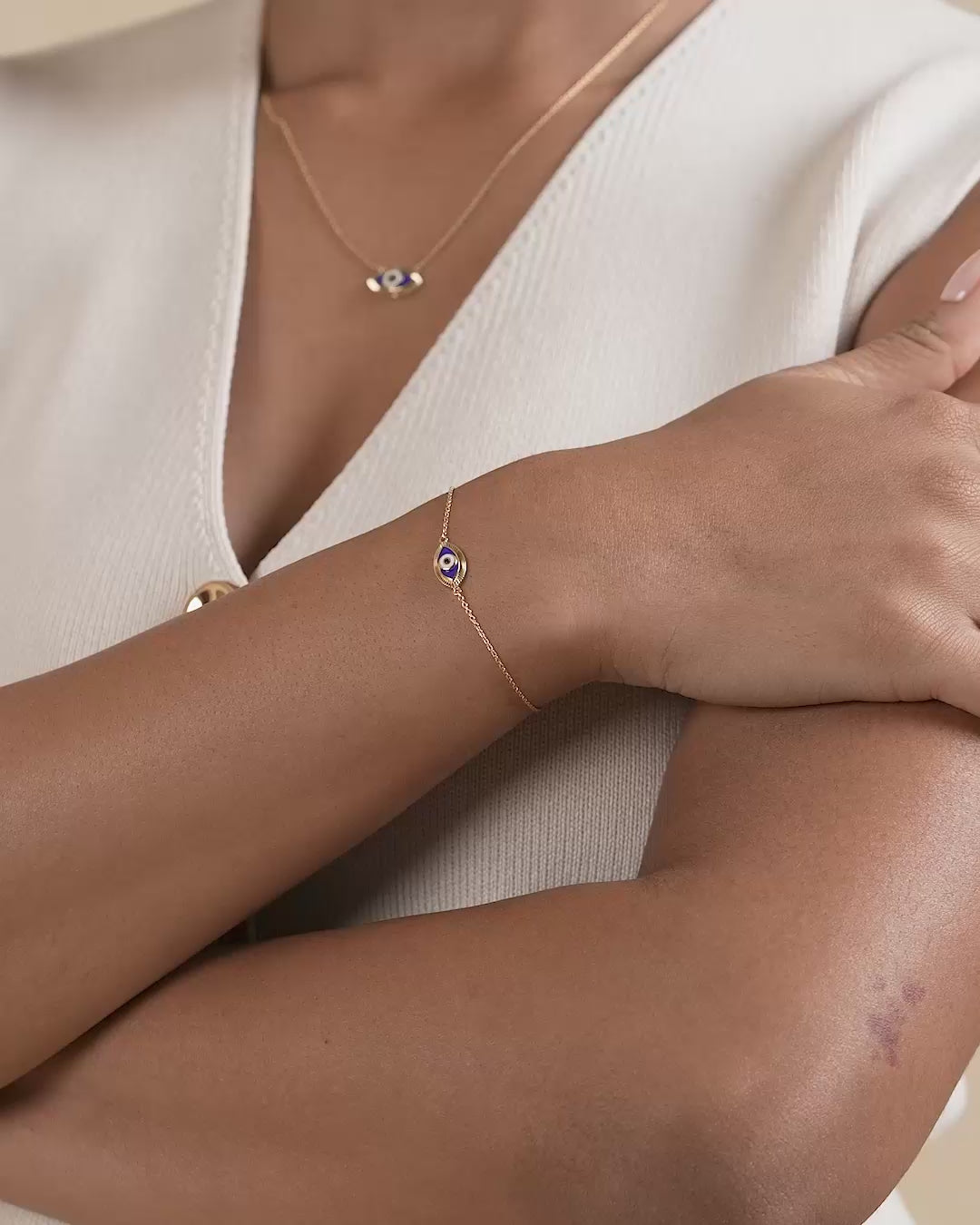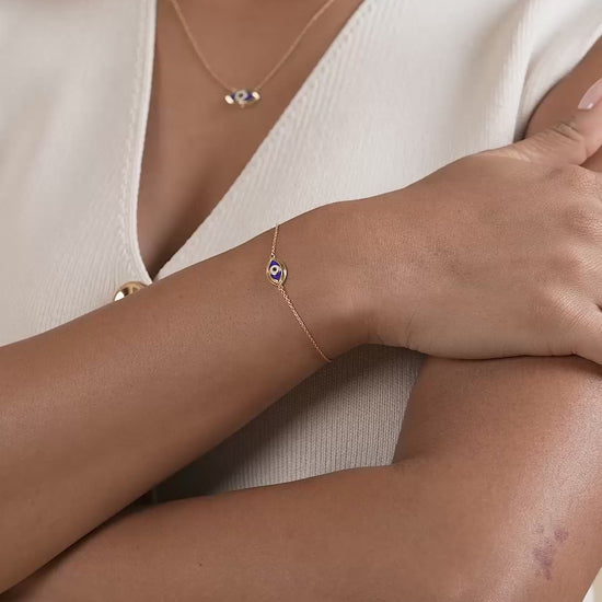 Handcrafted in yellow gold, this bracelet features smooth enamel detailing and a secure clasp, offering comfort with a touch of mystique.