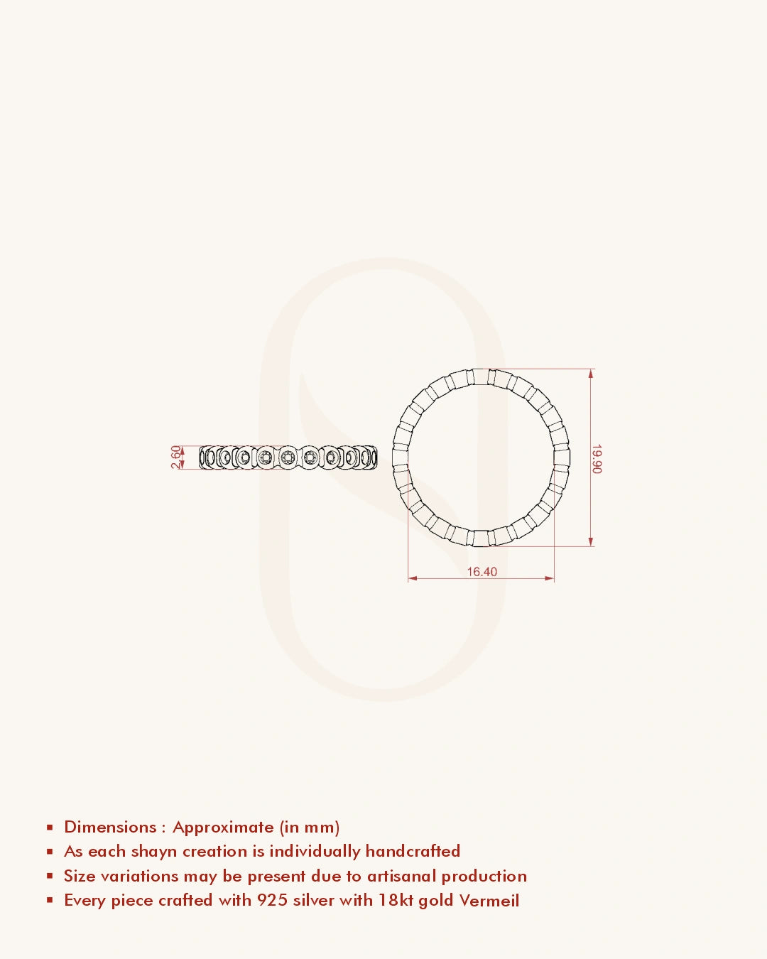 | Metal | 18KT Gold Vermeil (2.5 Microns Gold Layer on 925 Silver) |