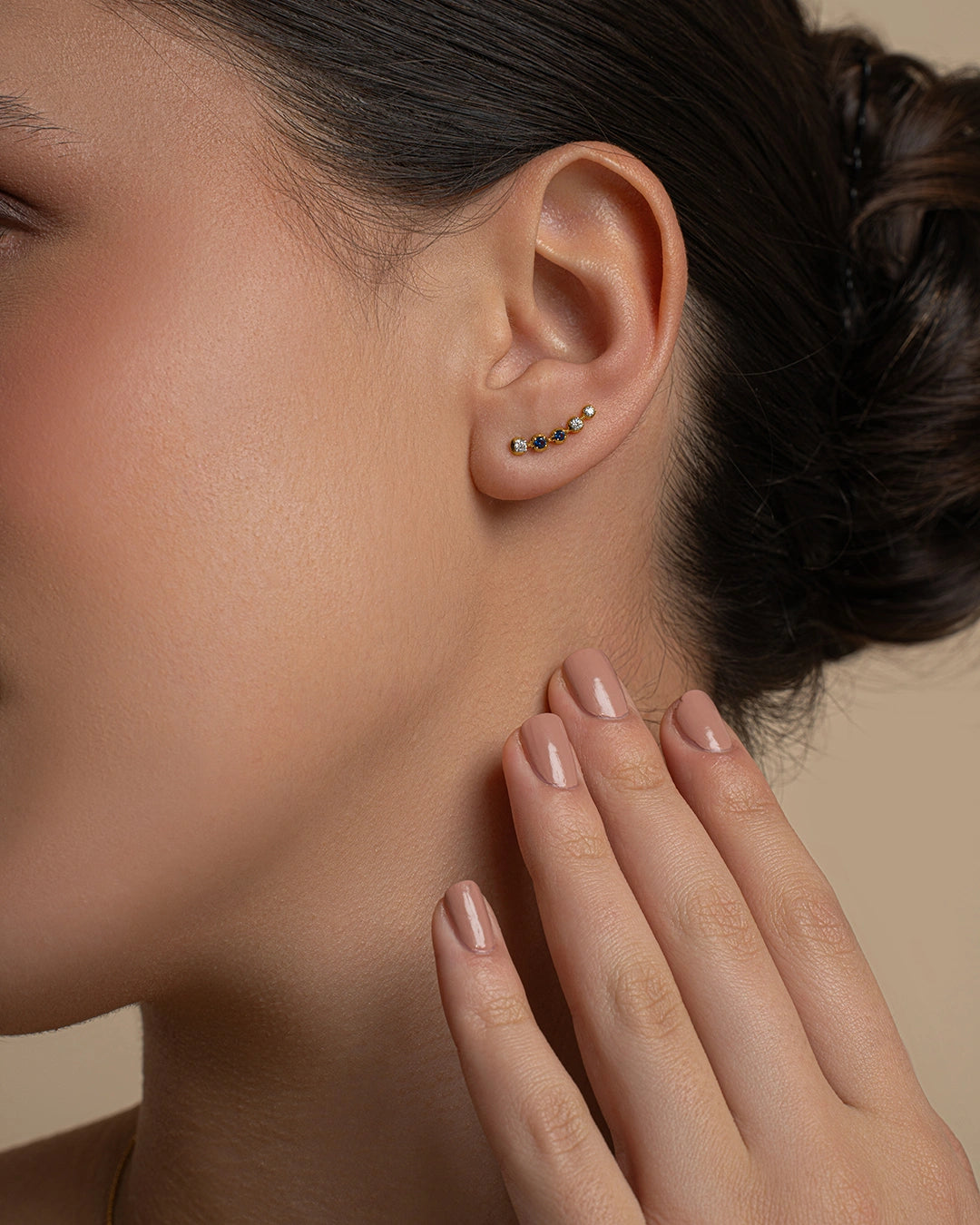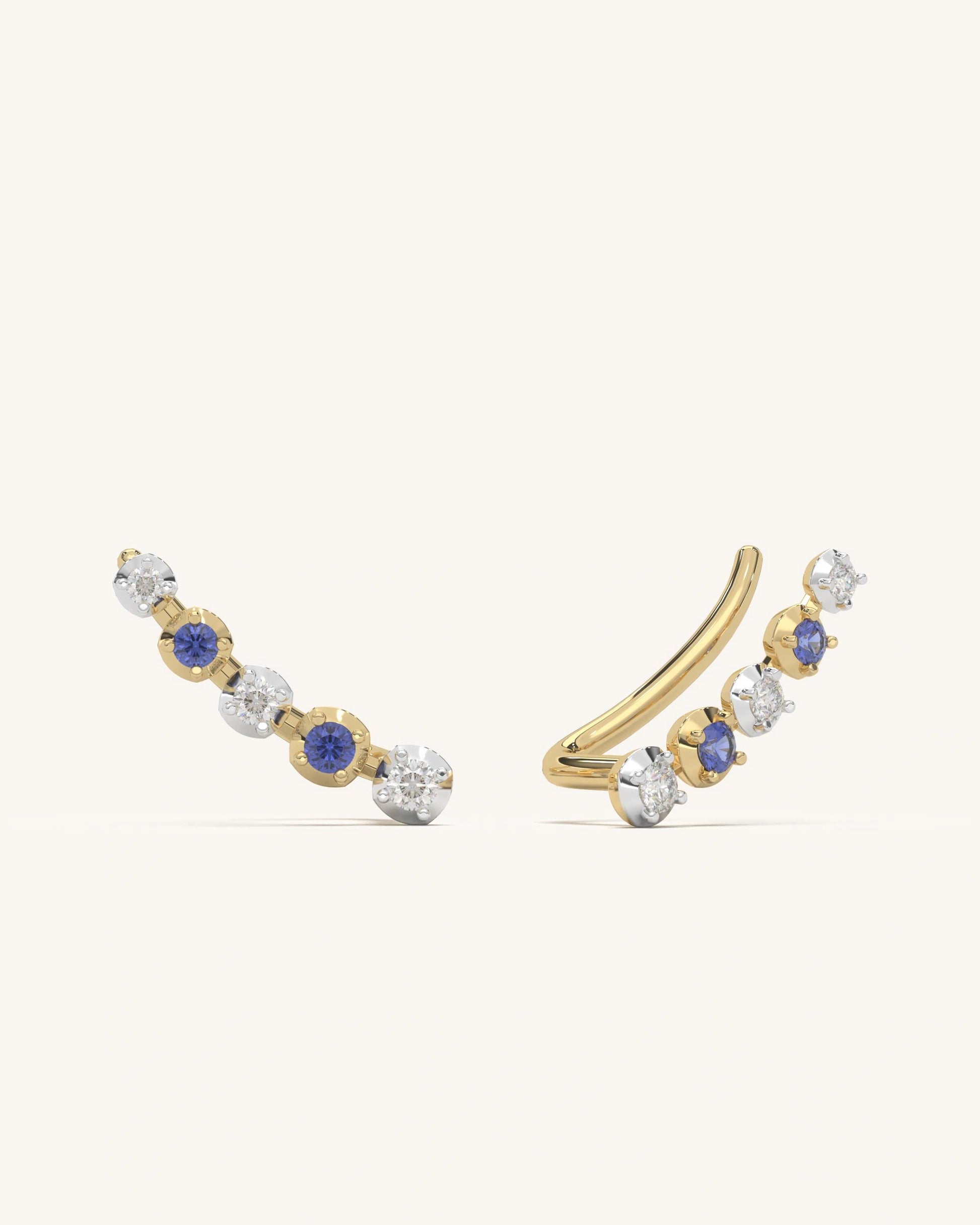 Crafted in 925 silver with moissanite diamonds and blue stones. Finished in a sleek gold tone for versatile wear.