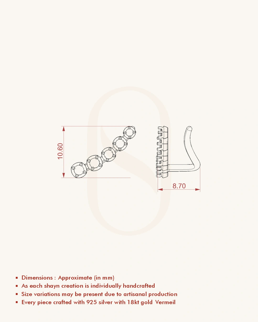 | Metal | 18KT Gold Vermeil (2.5 Microns Gold Layer on 925 Silver) |