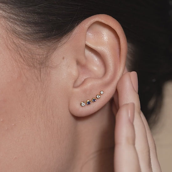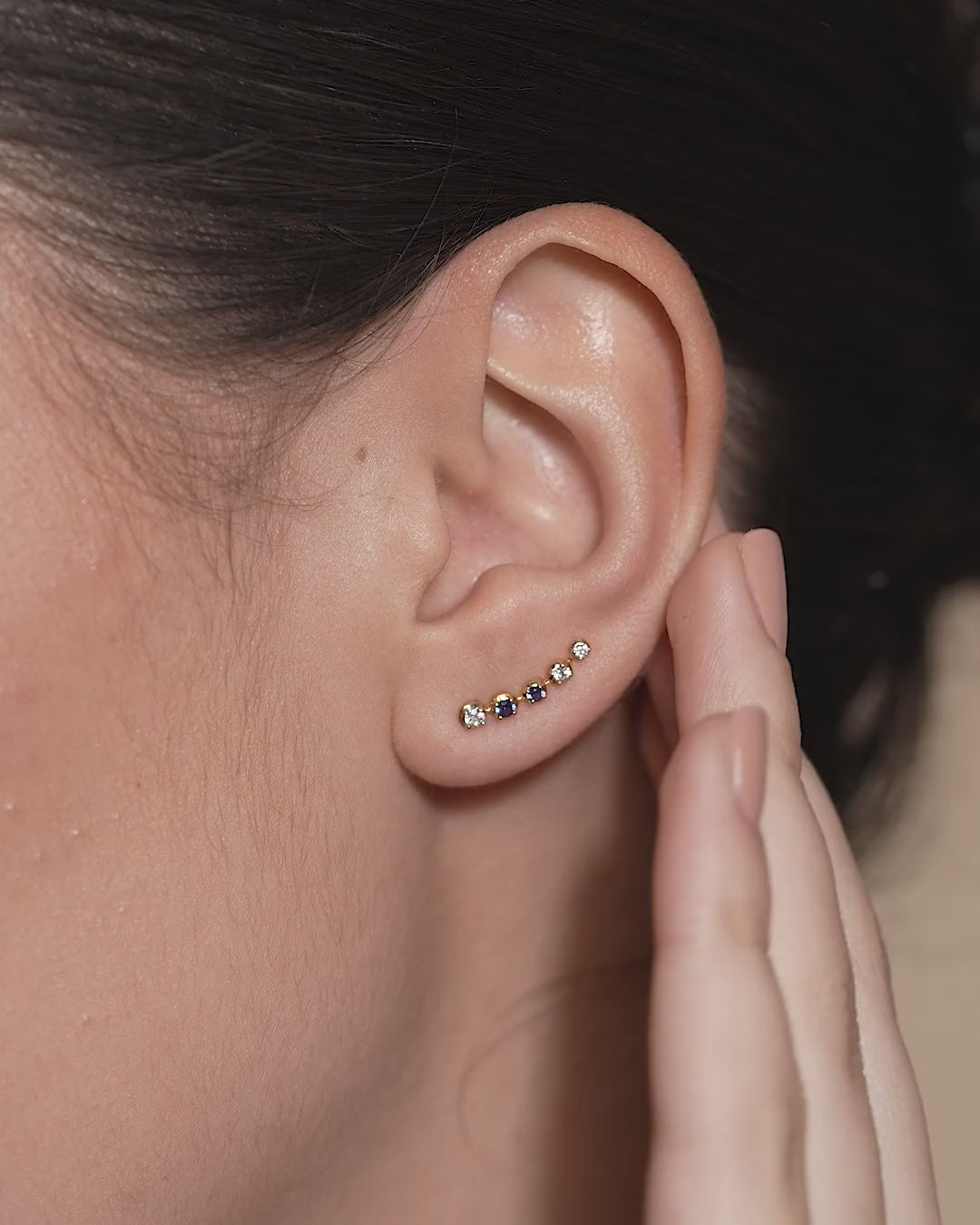 Crafted in 925 Sterling Silver 18 KT Gold Vermeil with moissanite diamonds and blue stones. Finished in a sleek gold tone for versatile wear.