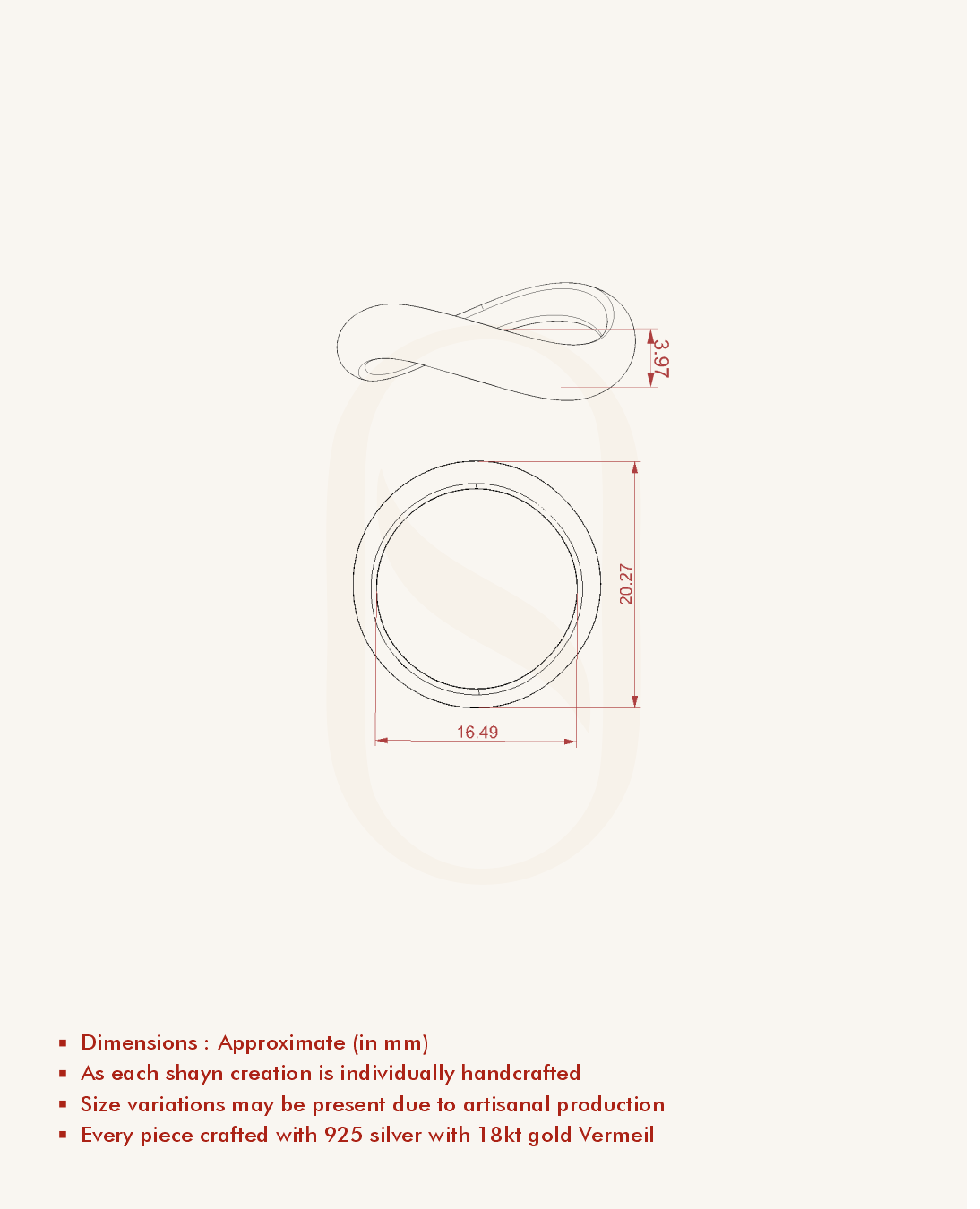 | Metal | 18KT Gold Vermeil (2.5 Microns Gold Layer on 925 Silver) |