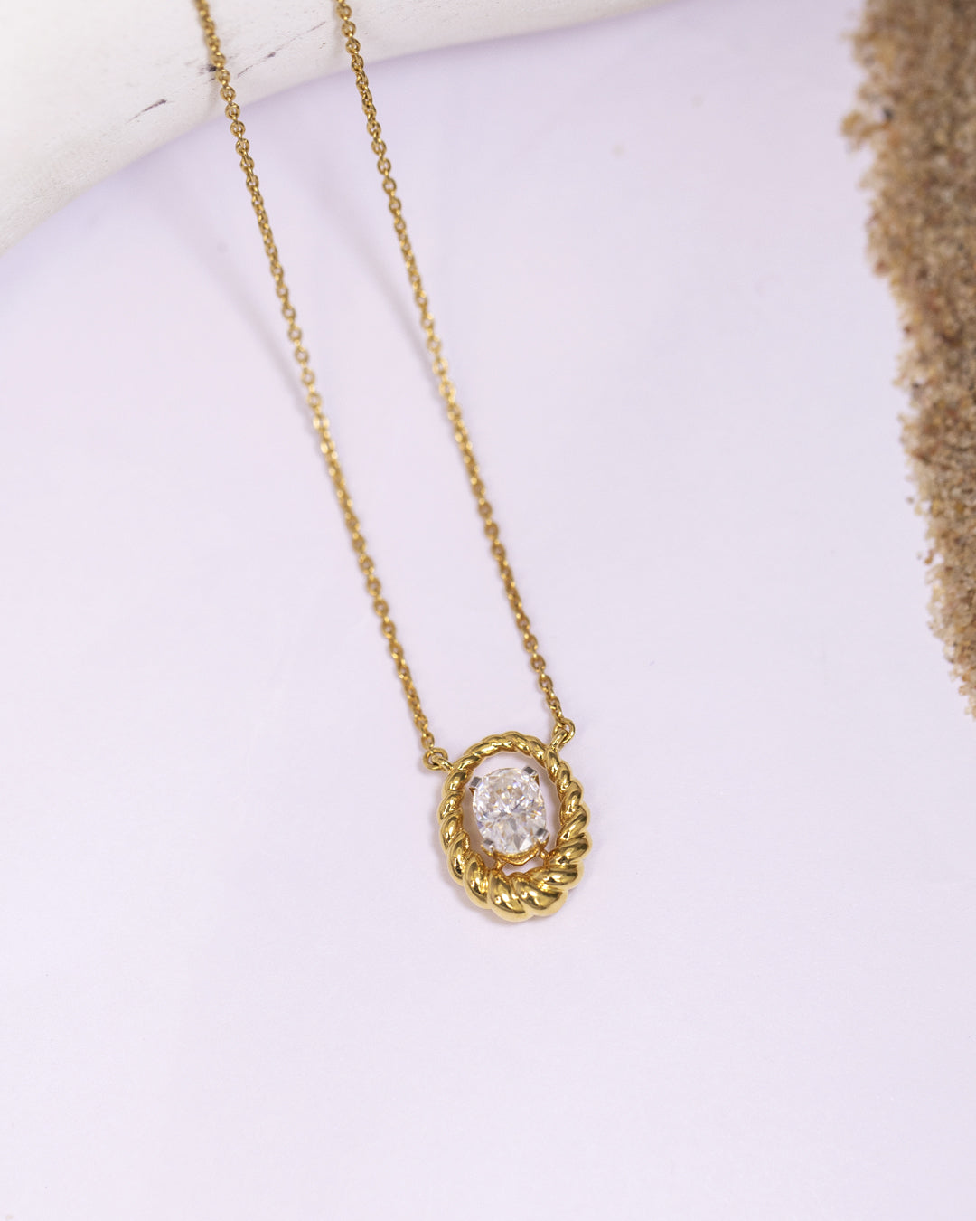 Braided Oval Necklace & Twist Diamond Earrings