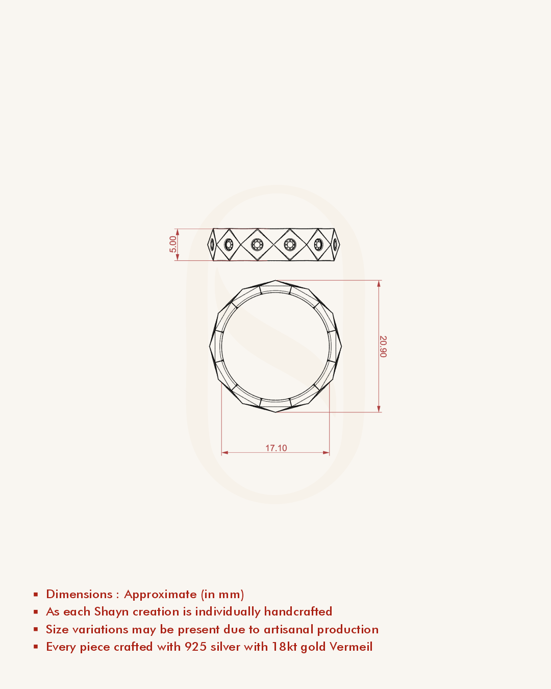 | Metal | 18KT Gold Vermeil (2.5 Microns Gold Layer on 925 Silver) |