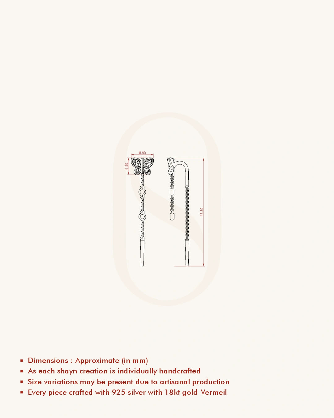 | Metal | 18KT Gold Vermeil (2.5 Microns Gold Layer on 925 Silver) |