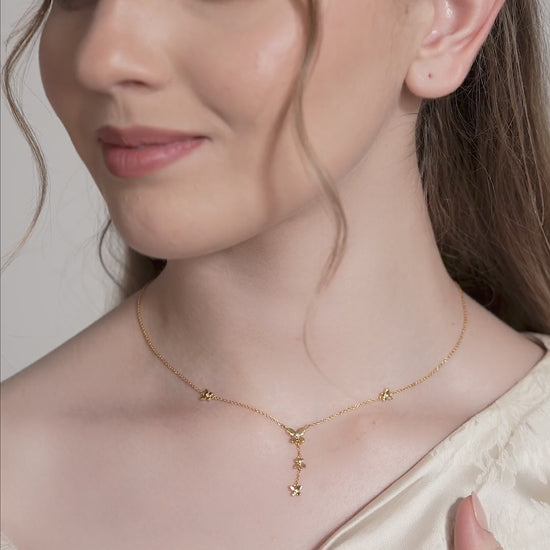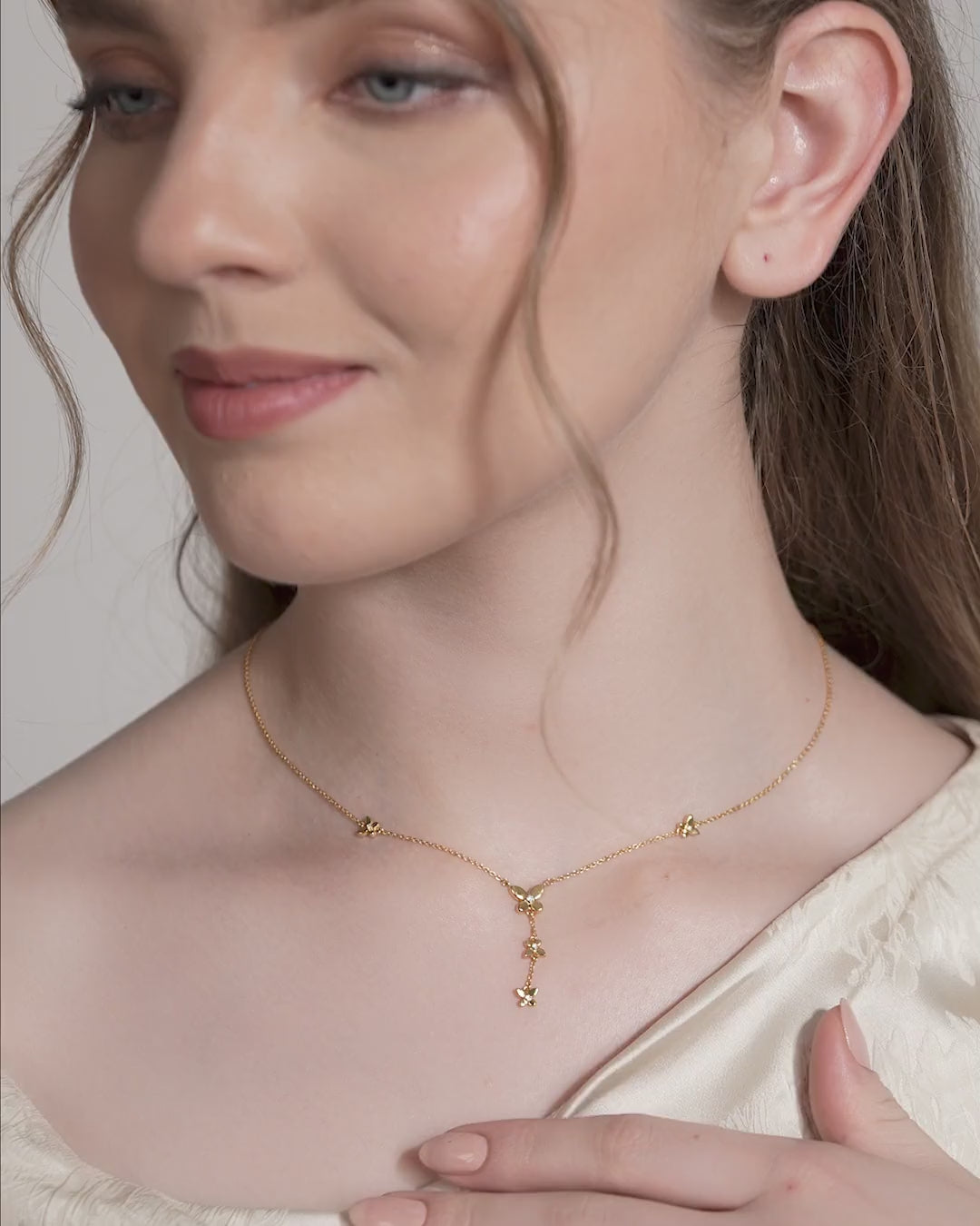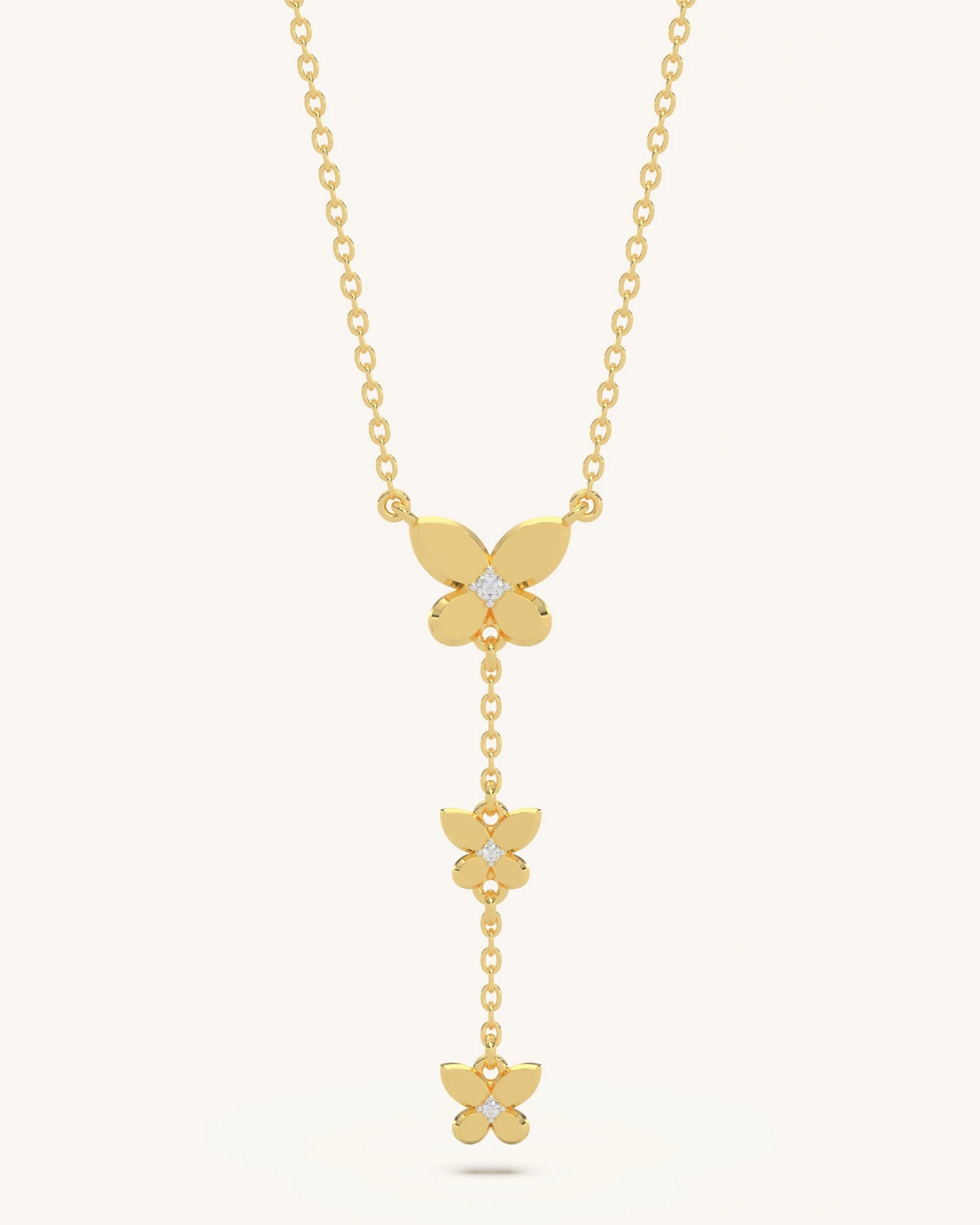 Made from 925 sterling silver and gold plated to perfection, this necklace includes three moissanite diamonds to reflect light with each movement.