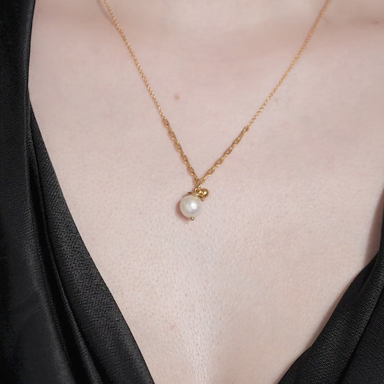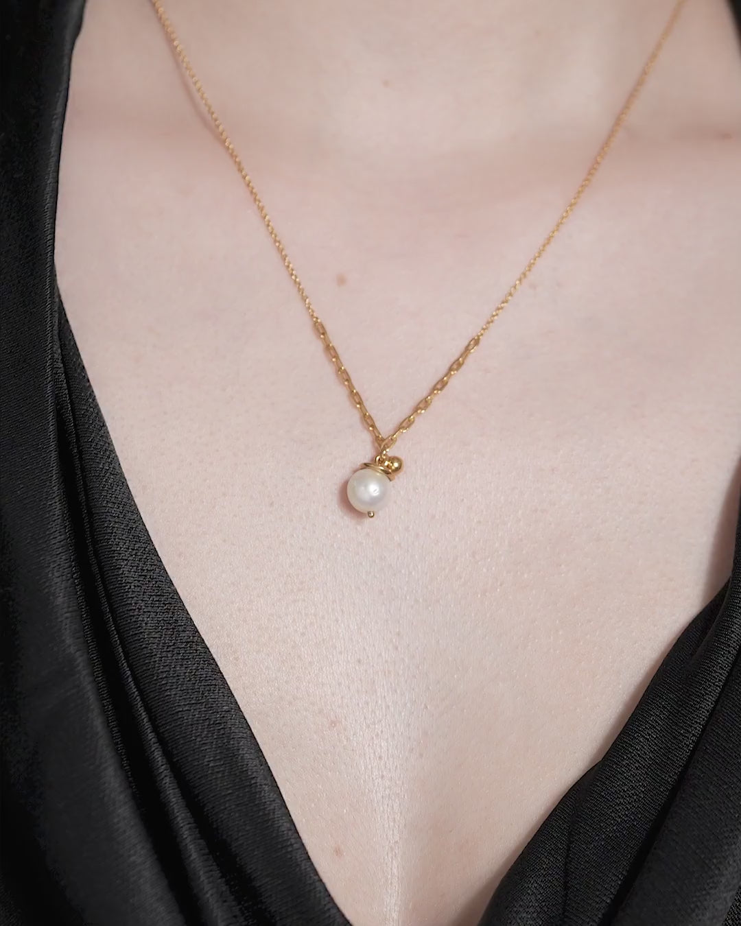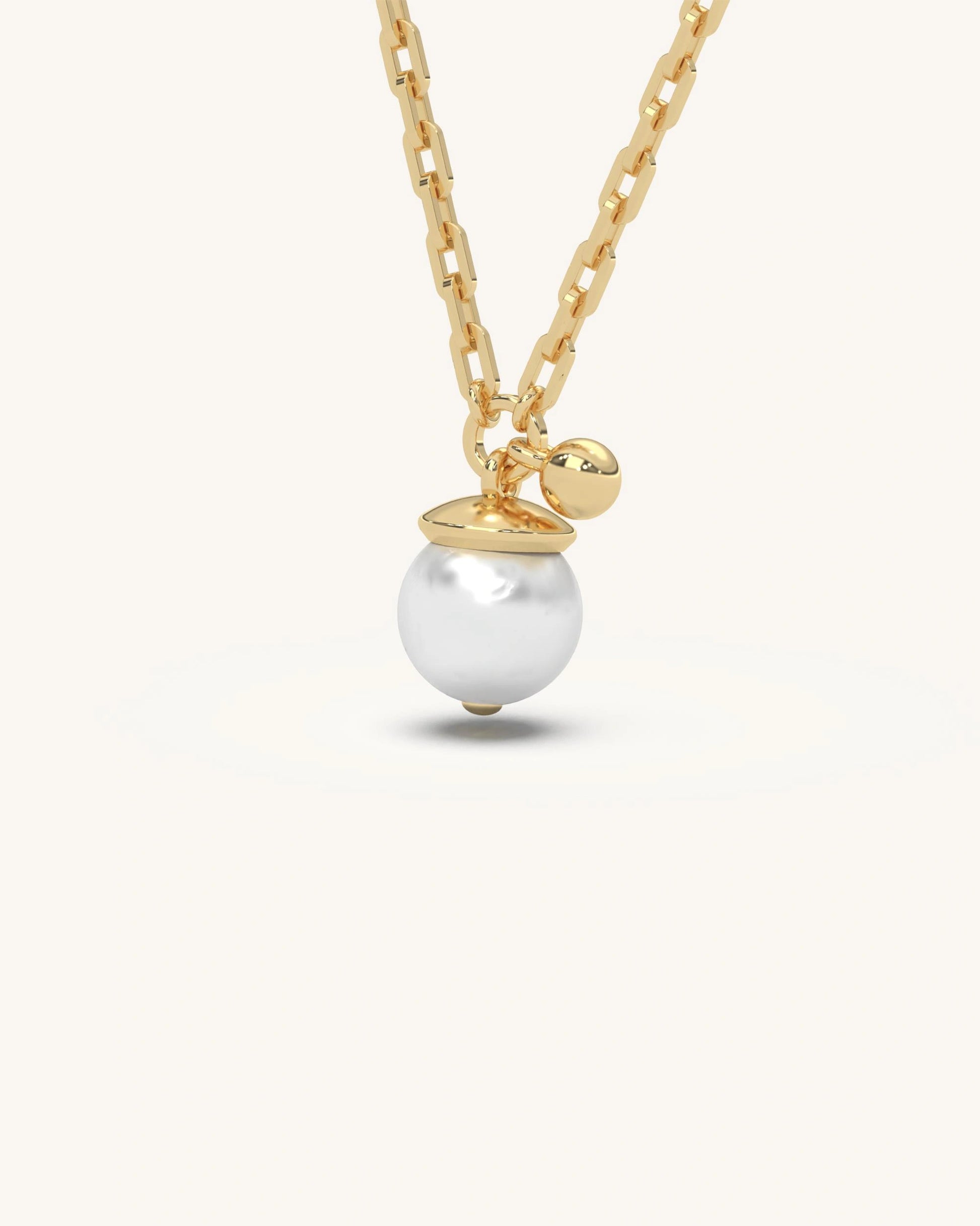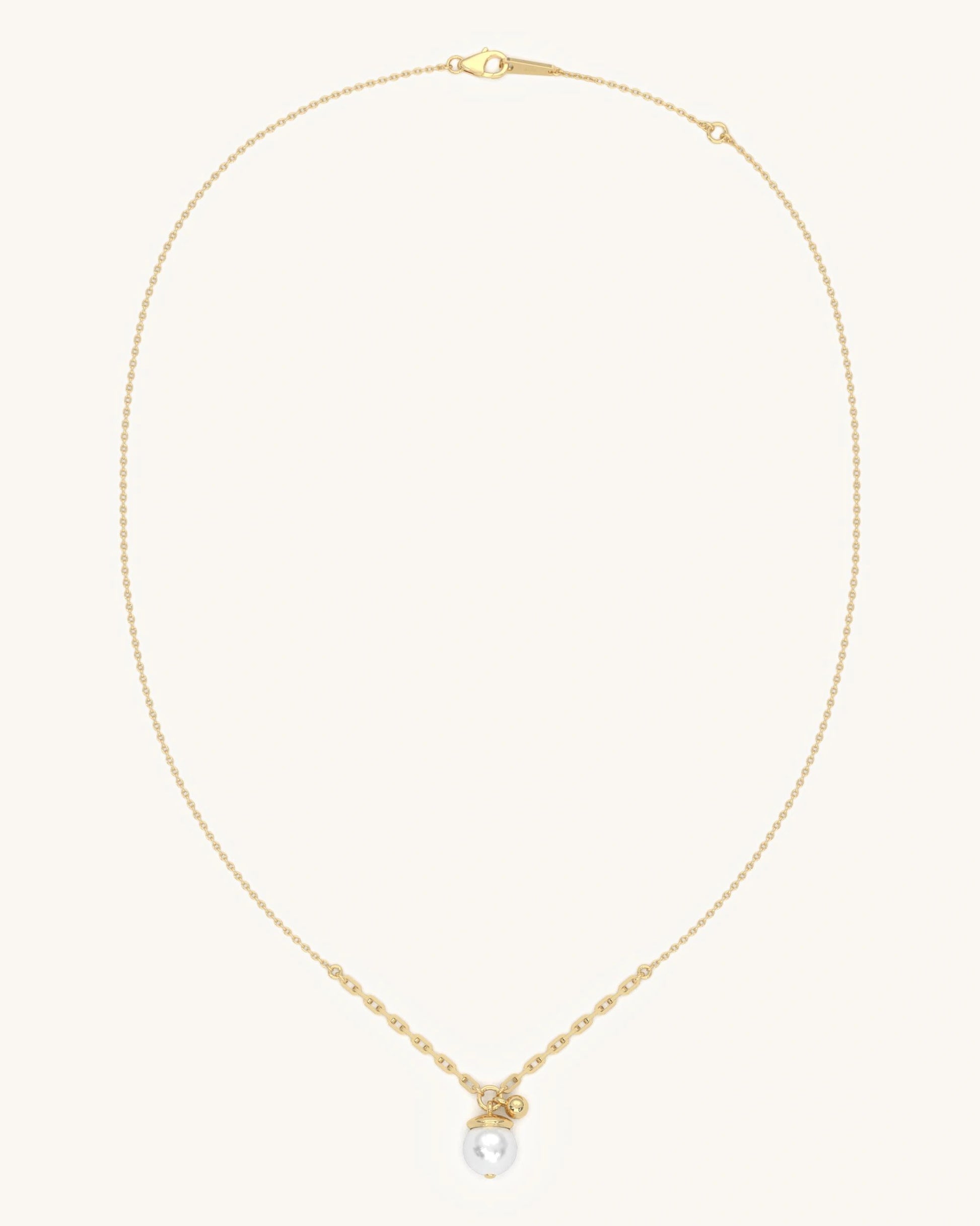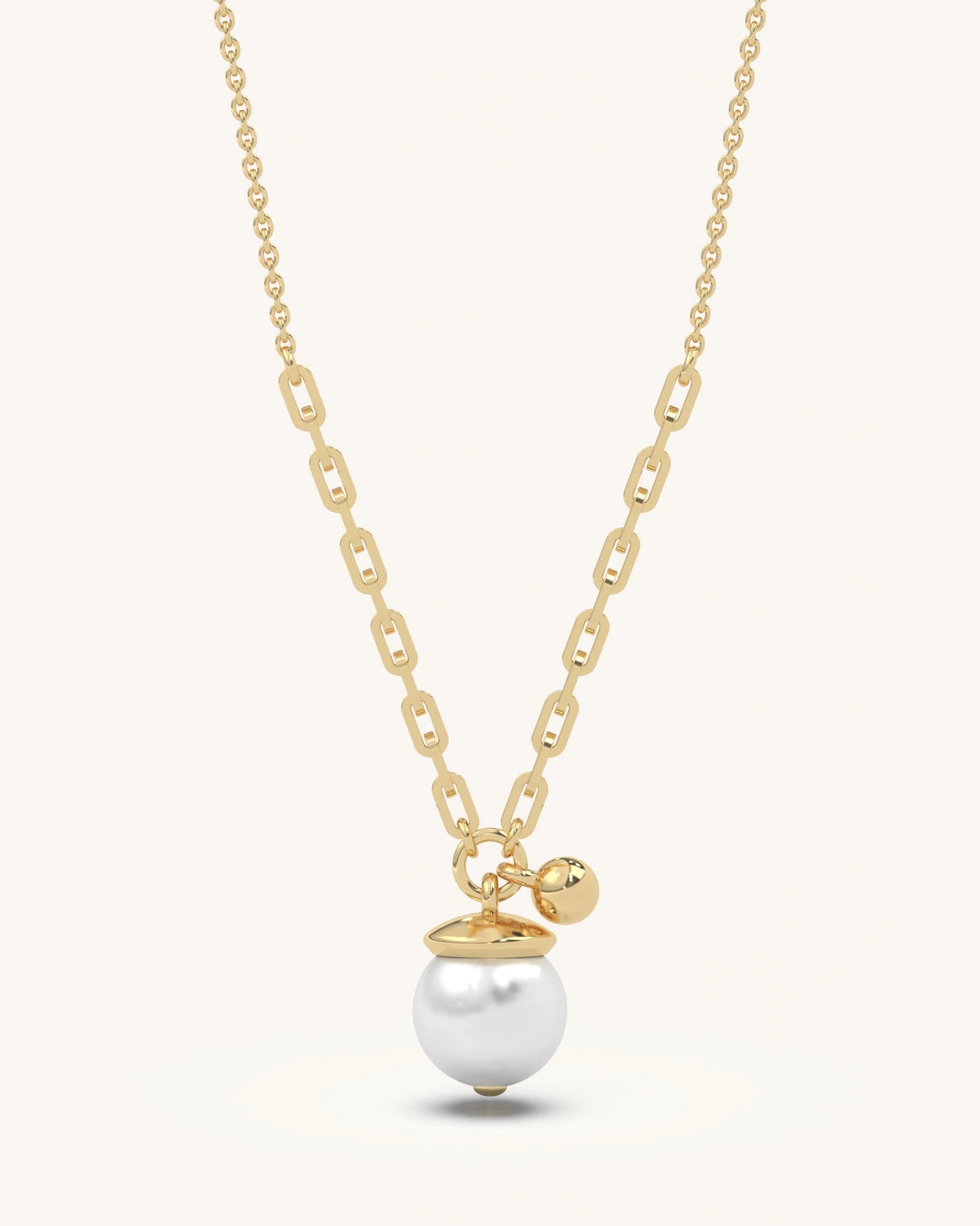 Crafted in 925 silver and finished with gold plating, this piece includes no moissanite diamond but stands out with its pearl charm and geometric chain structure.