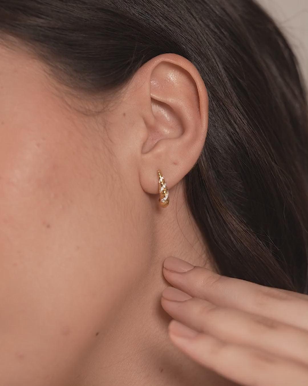 Fashioned from 925 silver and polished to perfection, these hoops feature bold curves and moissanite diamonds, delivering impact in a compact form.