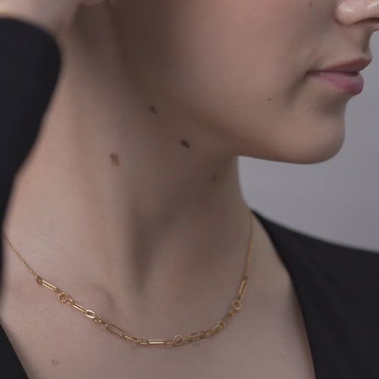 Featuring alternating open loops and classic links, this necklace delivers a timeless silhouette with a balanced contemporary touch.