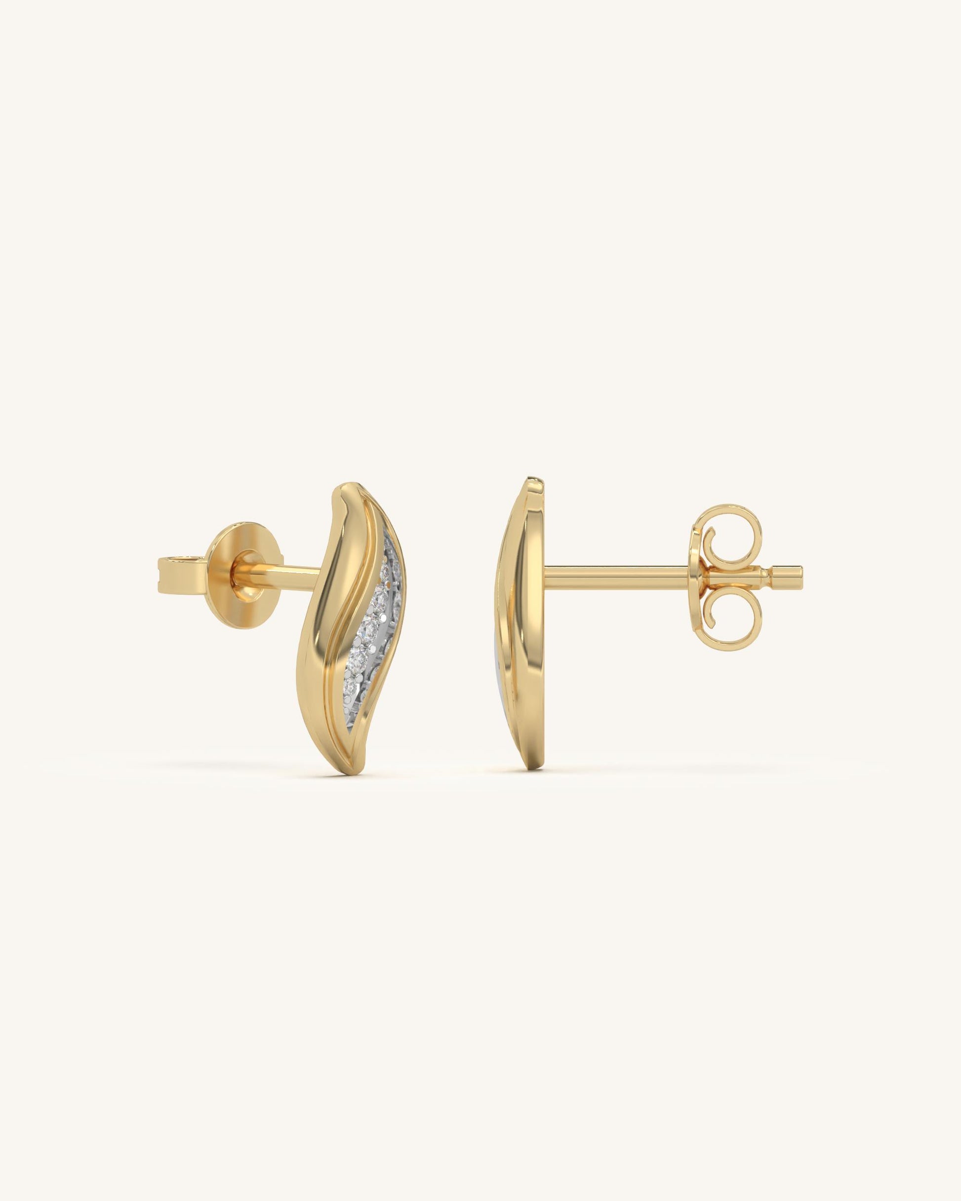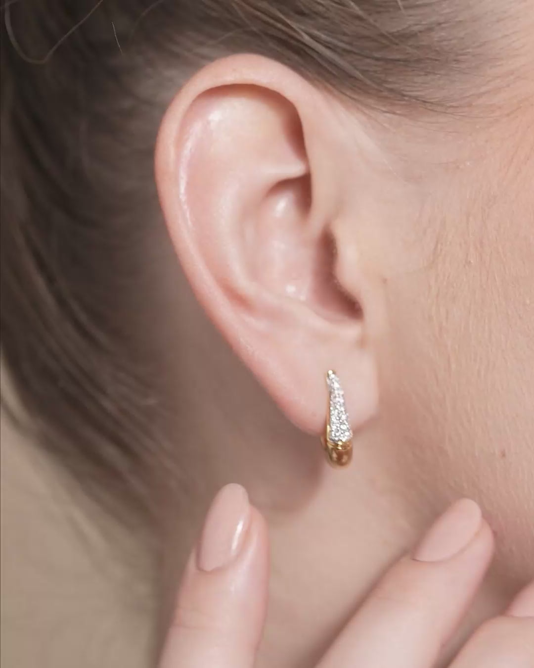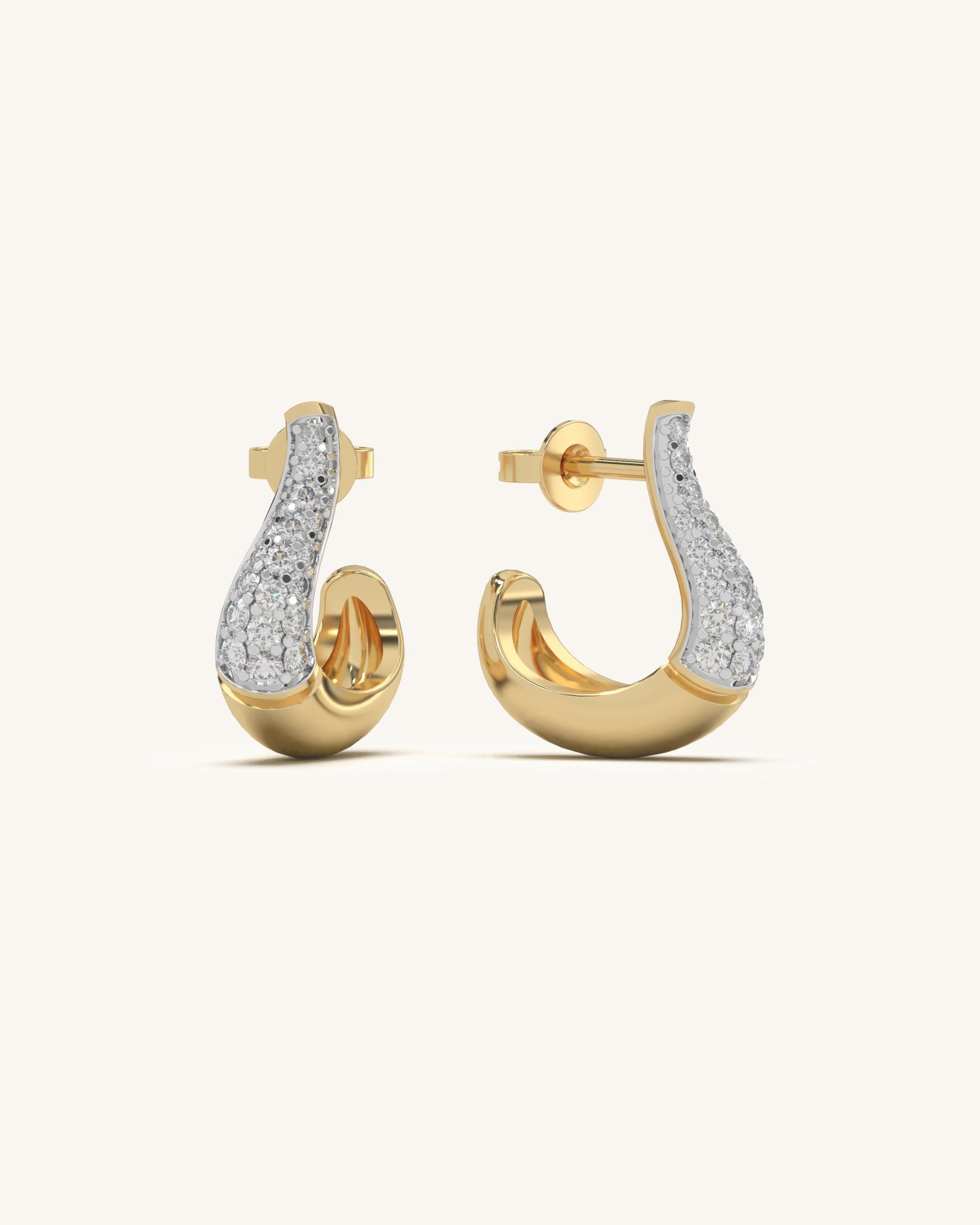 A contemporary twist on teardrop silhouettes, these earrings blend soft curves with shimmering brilliance. The upper section is adorned with moissanite diamonds, adding a refined sparkle, while the lower half in smooth 925 silver offers a luxurious gold-tone polish. Ideal for day-to-evening looks, they exude modern elegance and grace.