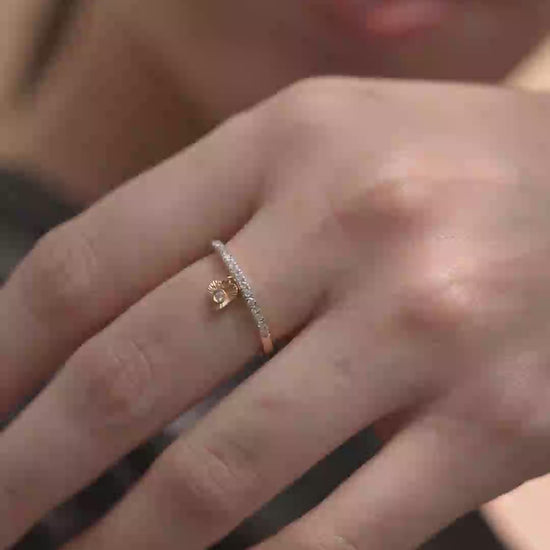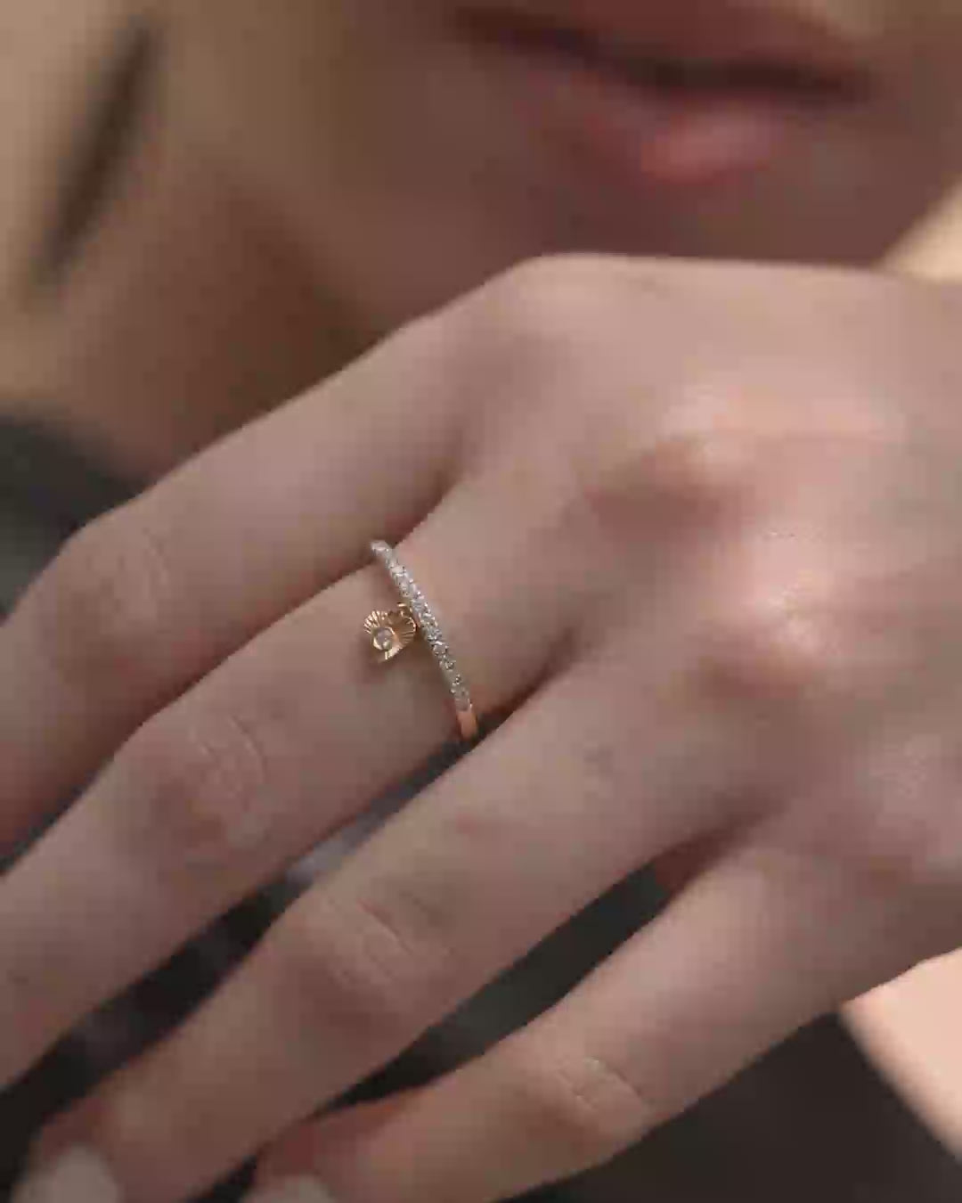 A shimmering diamond-set band paired with a playful heart charm that moves with you. Perfect for stacking or wearing solo as a statement