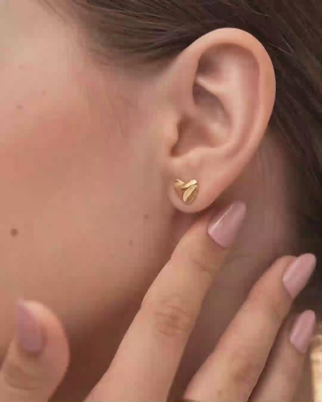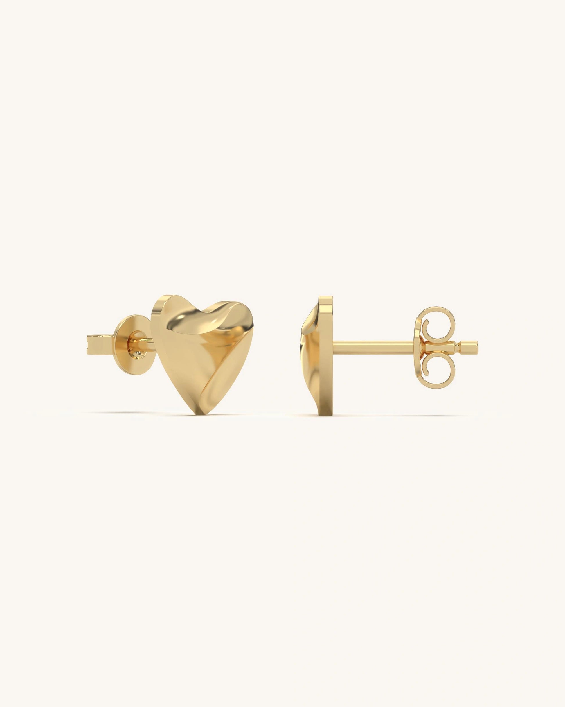 Crafted in a soft and fluid gold finish, these heart-shaped studs offer a modern twist with smooth contours that reflect light beautifully. Their organic design and polished surface create a gentle and romantic style for any casual or special occasion.
