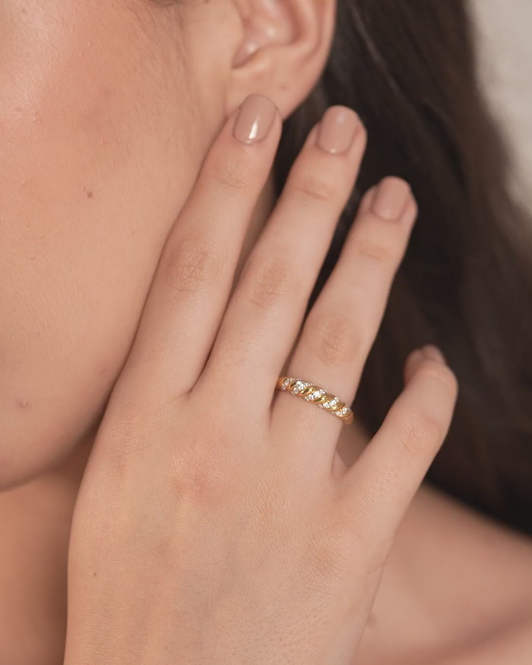 925 silver base. Moissanite diamonds. Designed for shine and comfort. Plated in gold tone. Long-lasting and skin-safe.