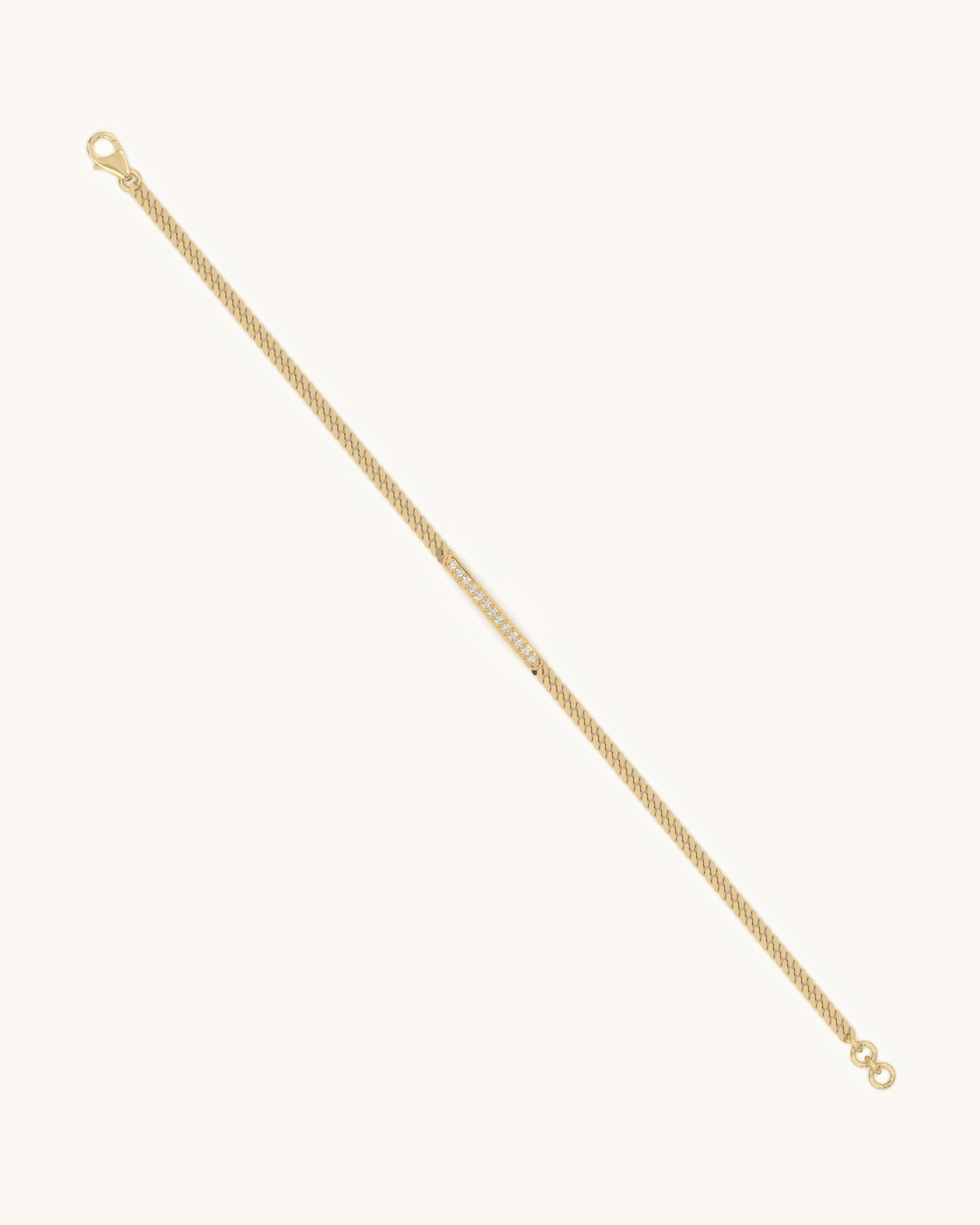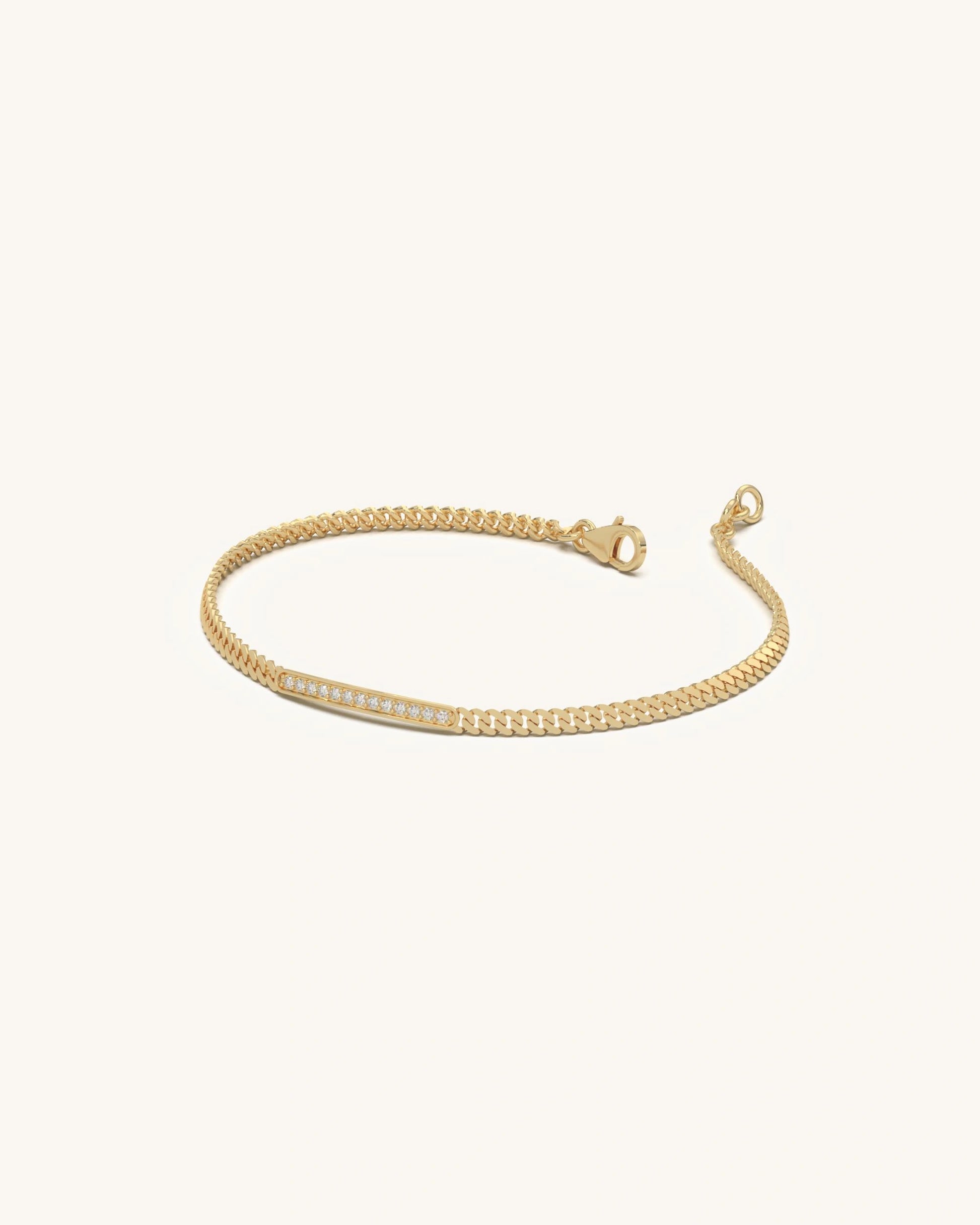 Crafted in rose gold plated 925 silver with precision-set round diamonds across a polished bar motif.