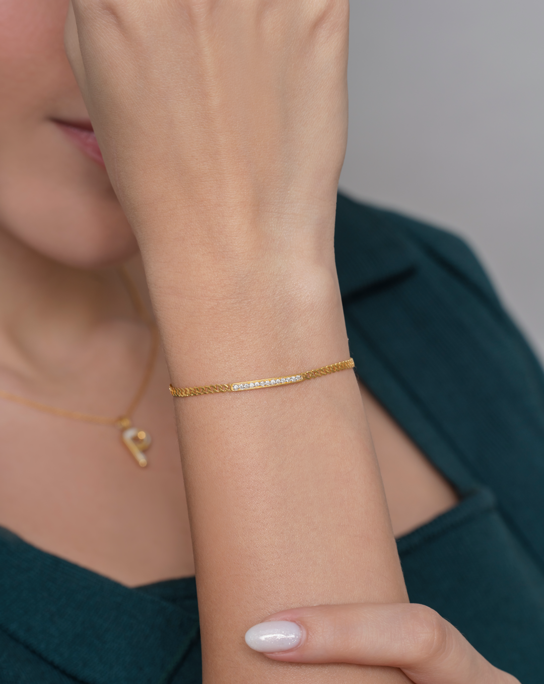 Diamond Bar Bracelet & Angular Heart Hoops