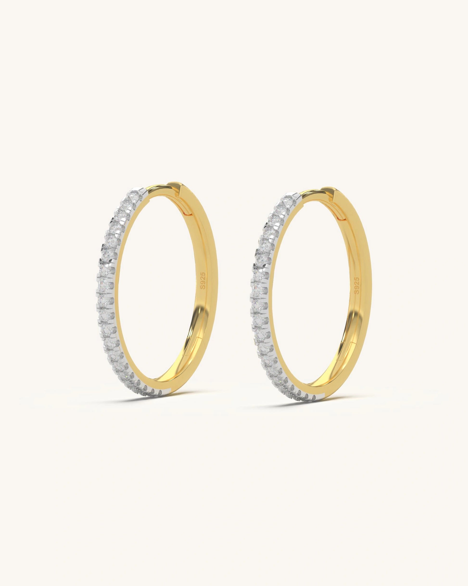 Elegant hoops detailed with a full row of sparkling moissanite diamonds. The stones are prong-set along the front curve to maximize shine and brilliance.