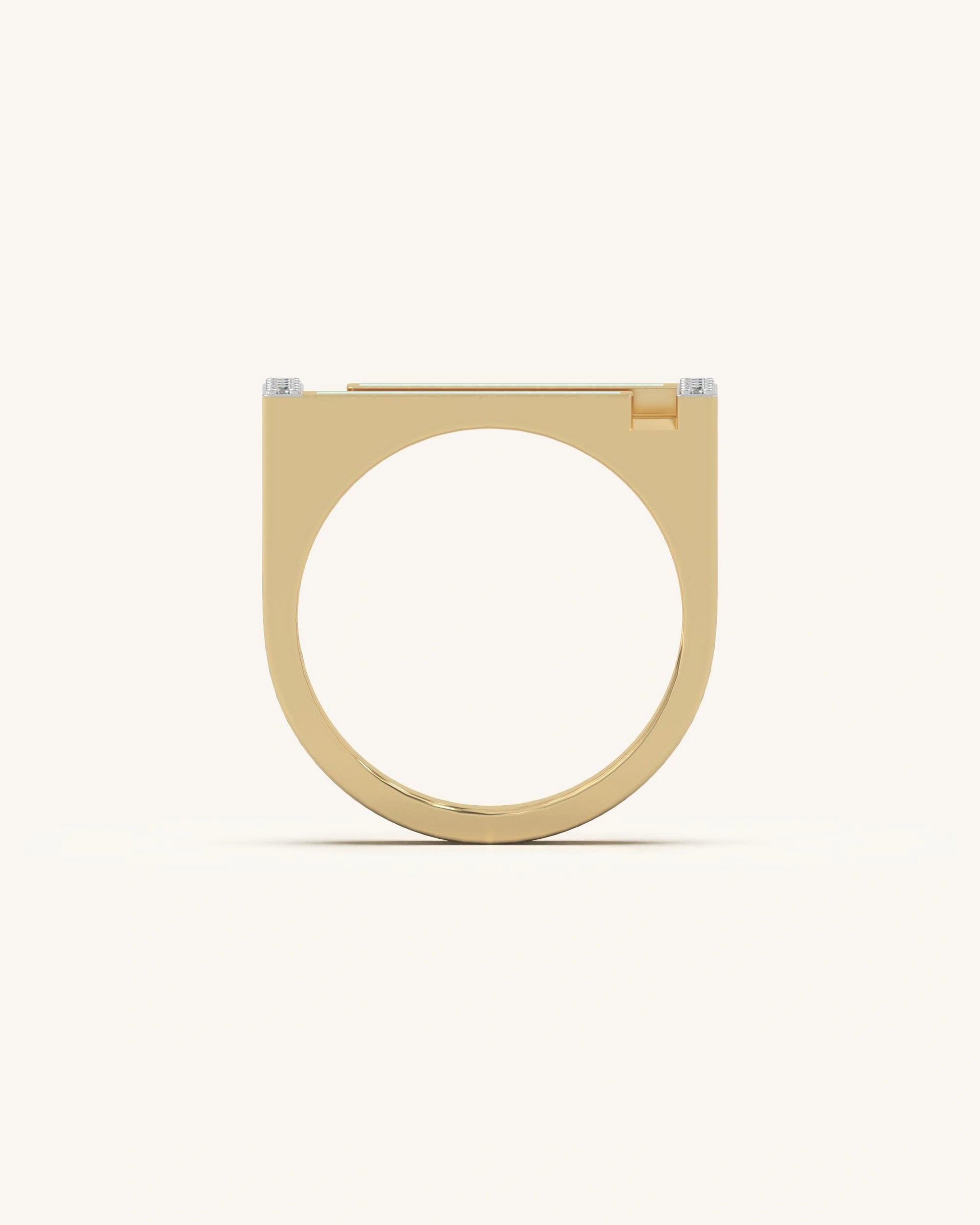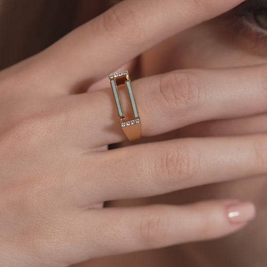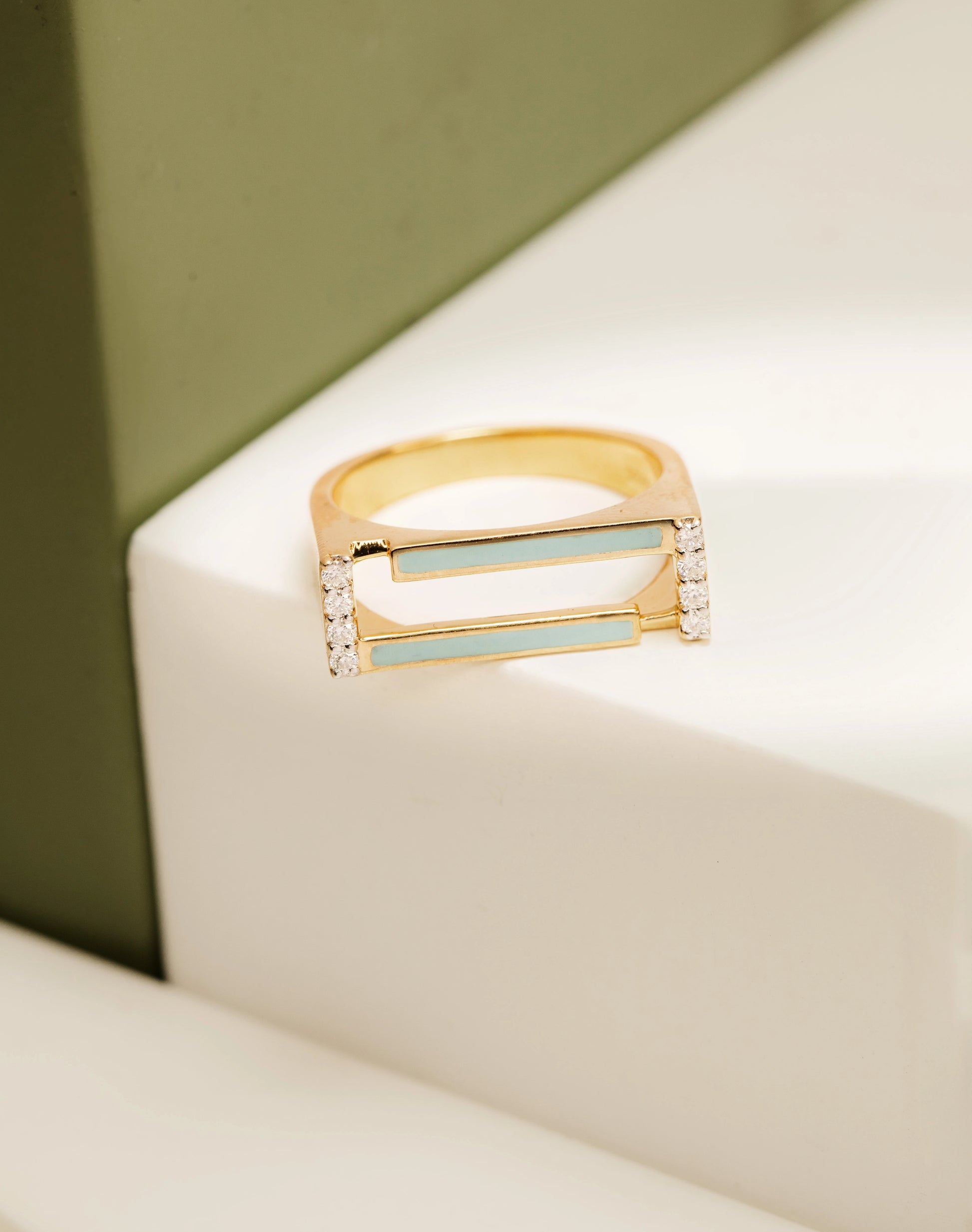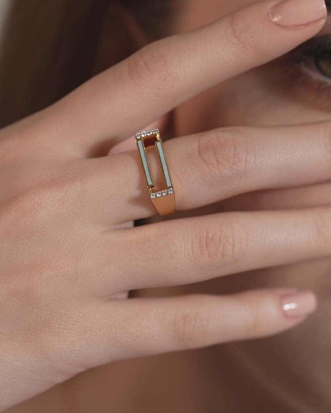 Its architectural open-band design and dual-enamel layout offer a modern and luxurious vibe, accented by sparkling Pave edges.
