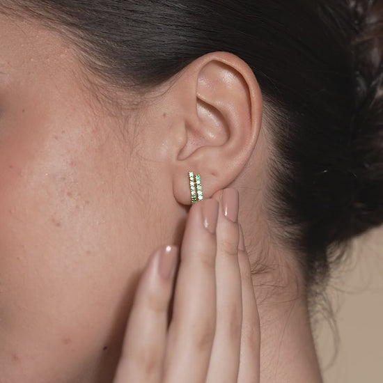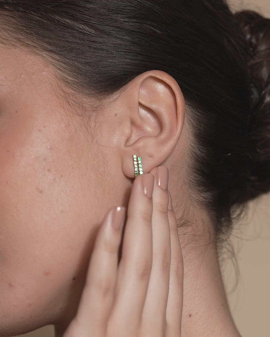 Crafted from 925 Sterling Silver 18KT Gold Vermeil with green stones and finished in radiant gold tone. Contemporary elegance redefined.