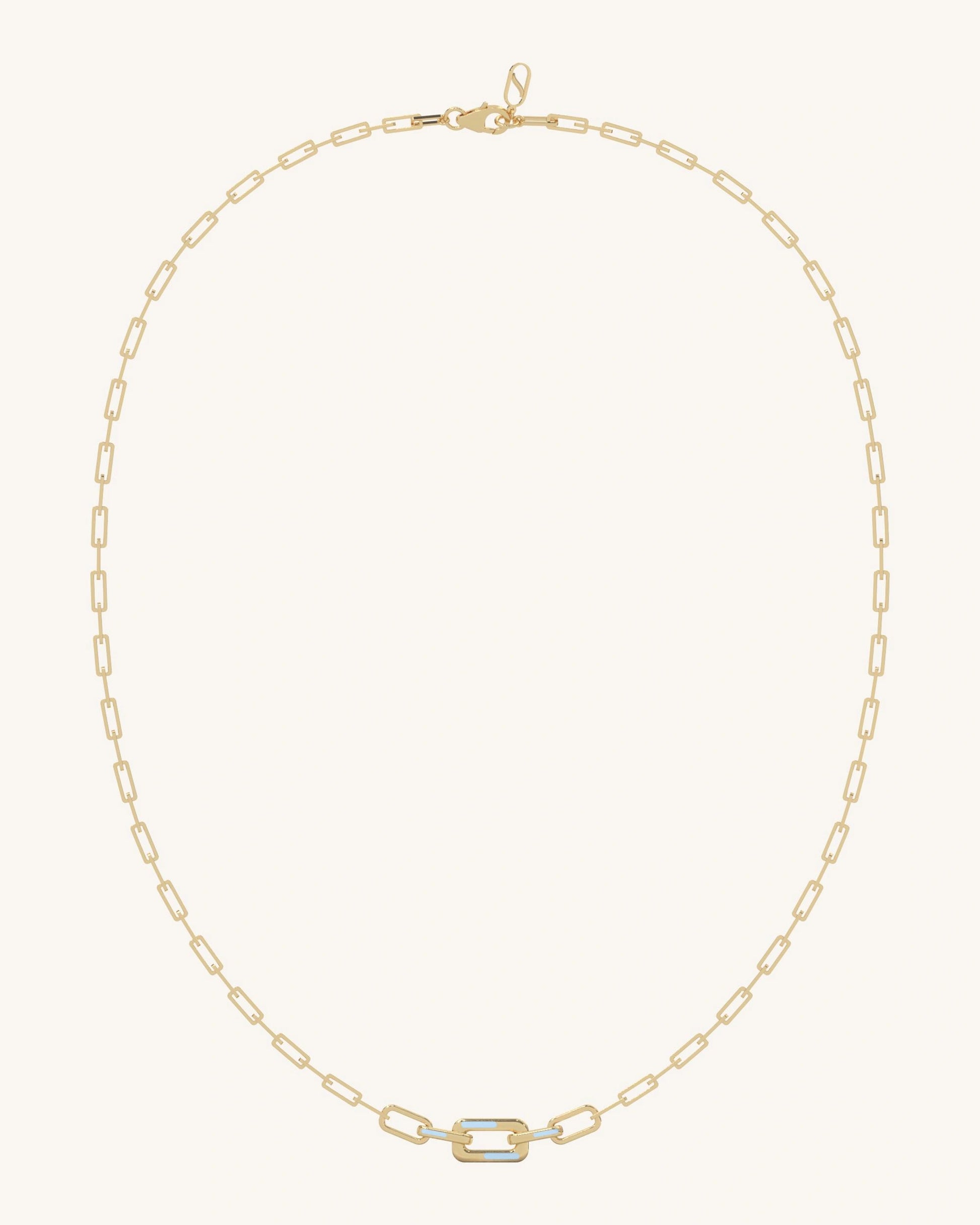 Crafted in 925 silver with a high-polish gold and silver tone finish. The central contrasting link adds visual interest without overpowering the overall minimalist style. Ideal for layered or solo styling.