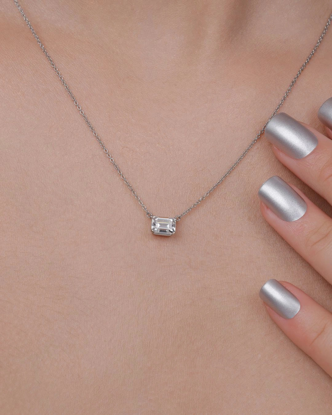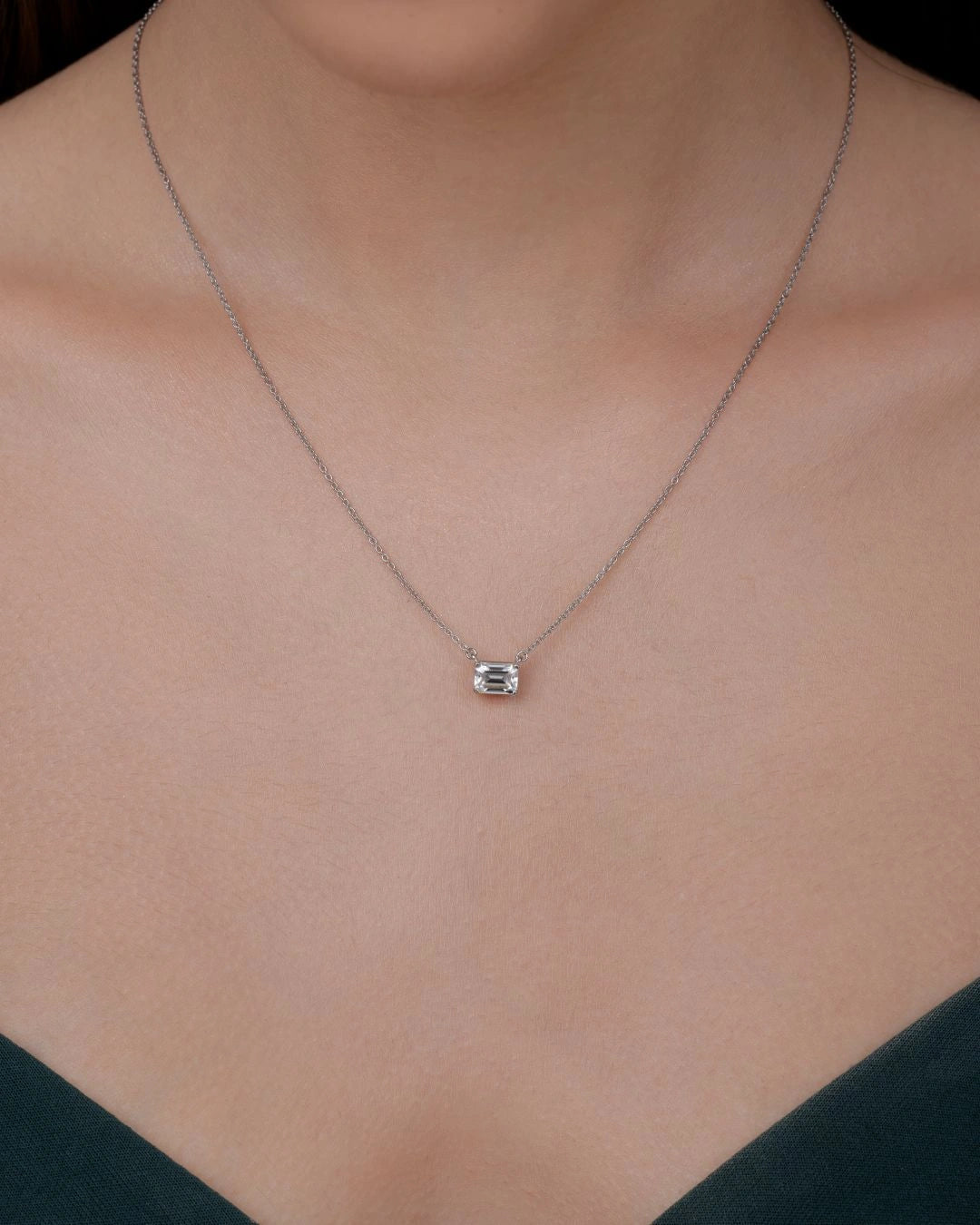 Showcasing a sleek emerald-cut stone, this Necklace in 925 sterling silver with 18KT gold vermeil delivers modern elegance with clean, structured lines.