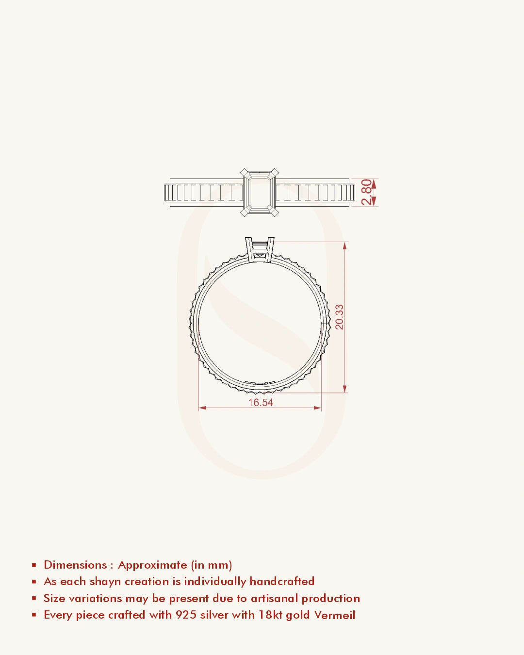 | Metal | 18KT Gold Vermeil (2.5 Microns Gold Layer on 925 Silver) |