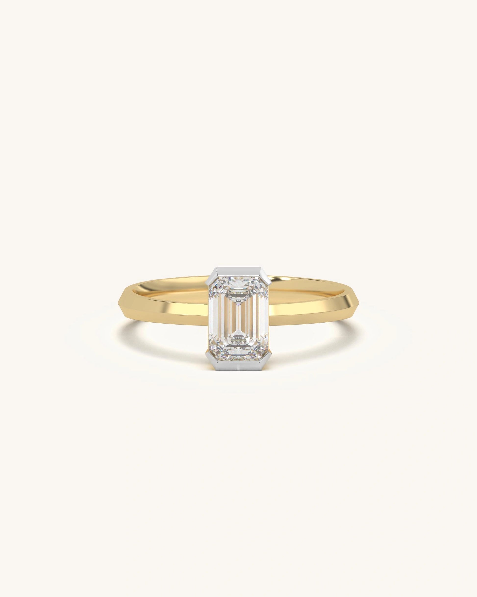 The emerald-cut stone delivers a sleek, mirror-like shine with timeless elegance. Designed for those who appreciate understated luxury. Clean, bold, and refined.
