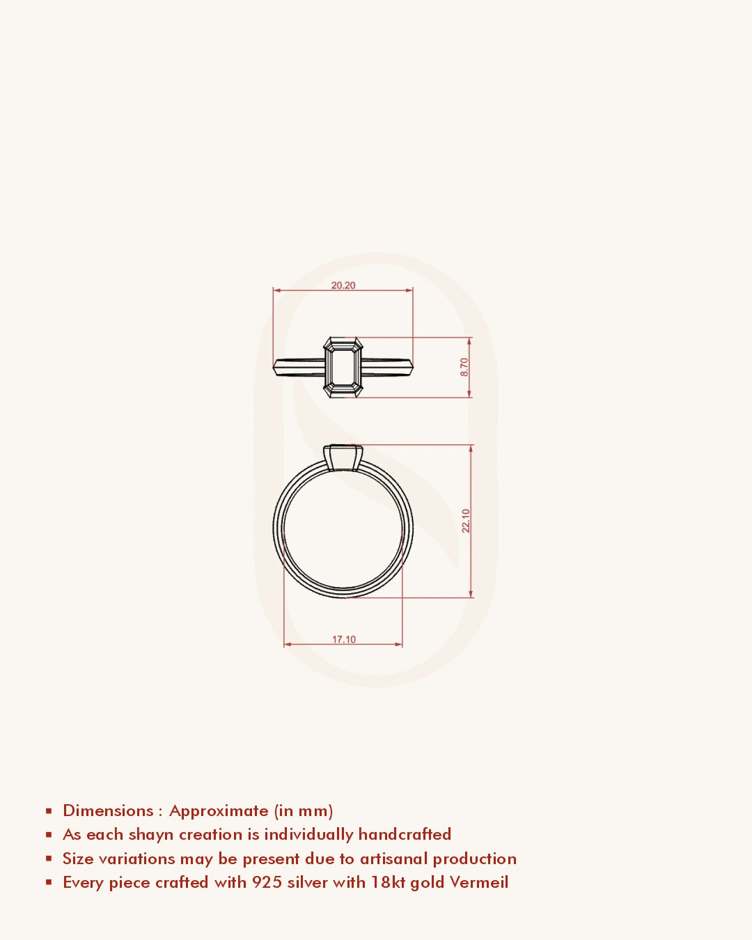 | Metal | 18KT Gold Vermeil (2.5 Microns Gold Layer on 925 Silver) |