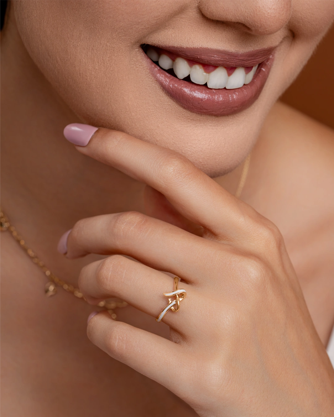 Crafted in 925 silver with dual tone plating and interwoven loop design for a symbolic look