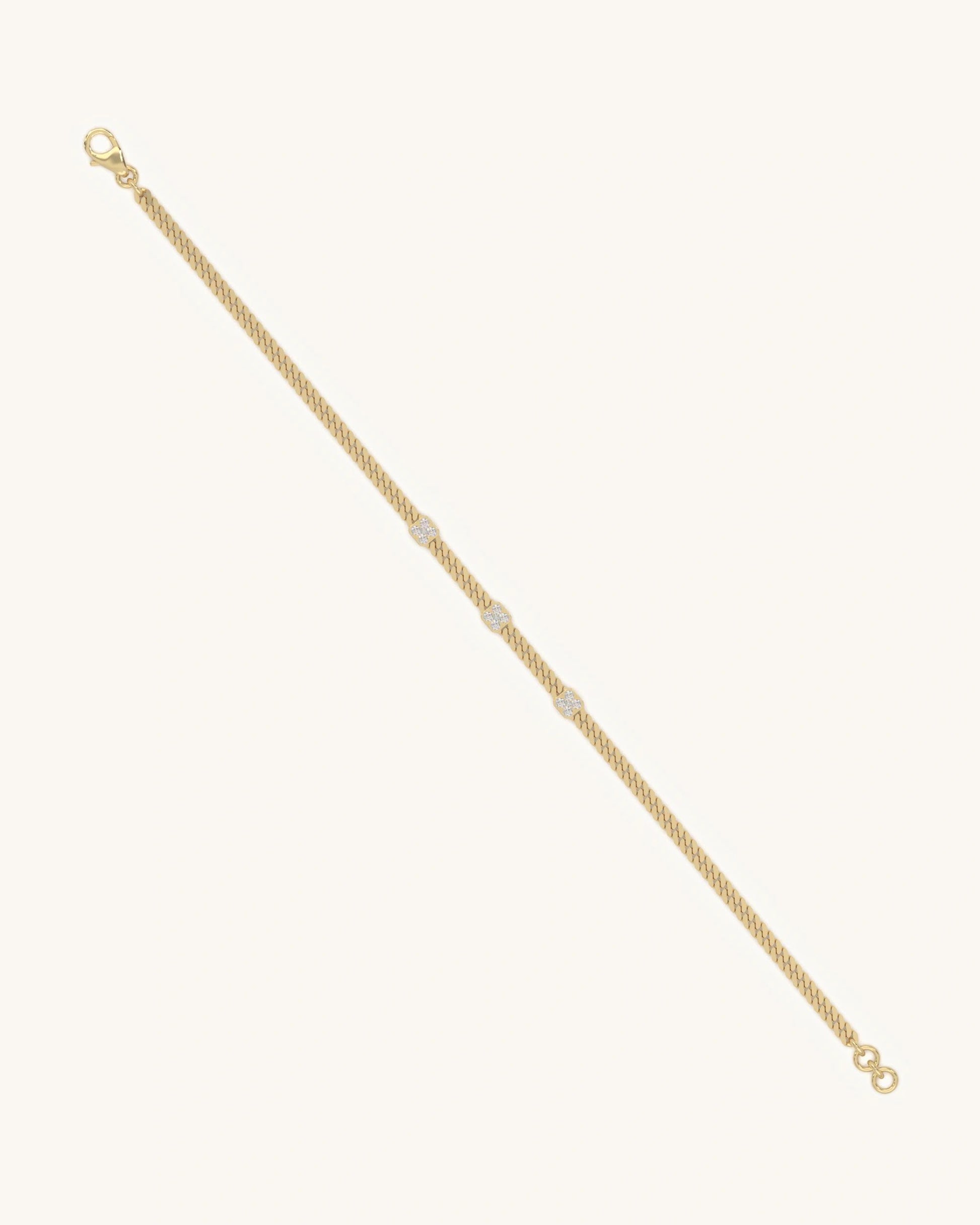 Crafted in rose gold plated 925 silver with sparkling floral diamond motifs in a symmetrical trio layout.