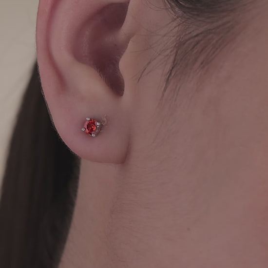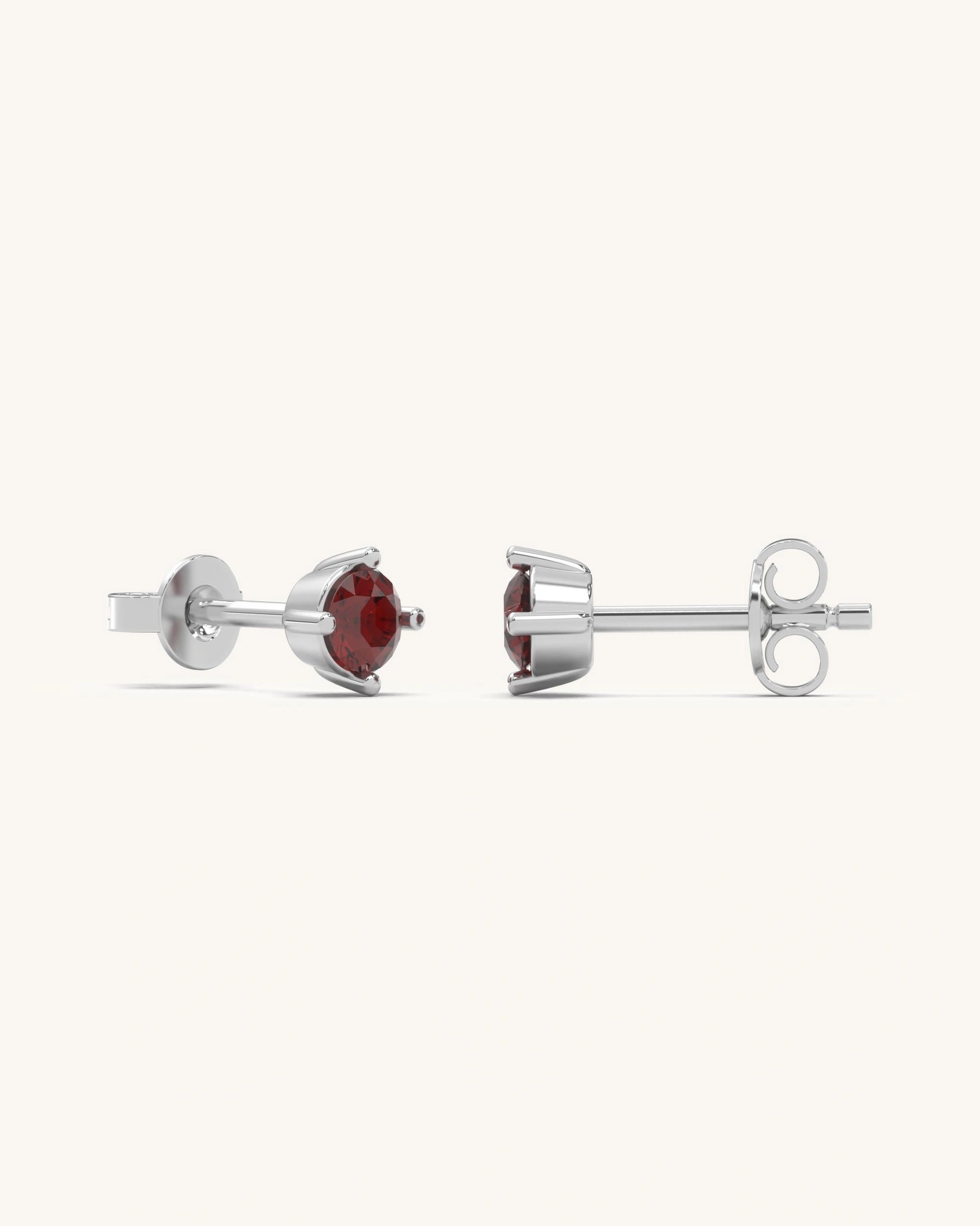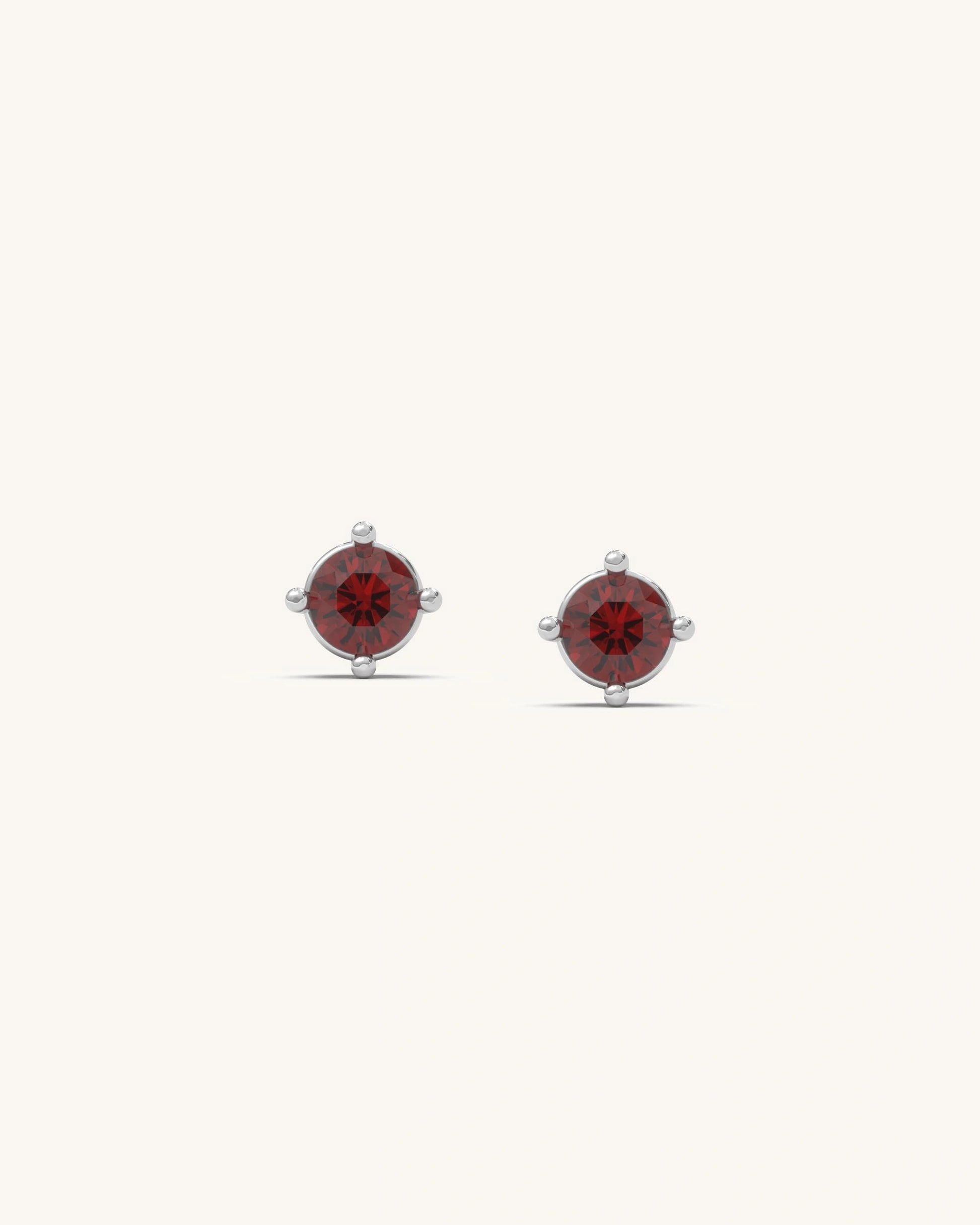 Minimal round-cut garnet studs in a classic prong setting. Designed for everyday wear with a rich, real-gold finish that adds subtle elegance.