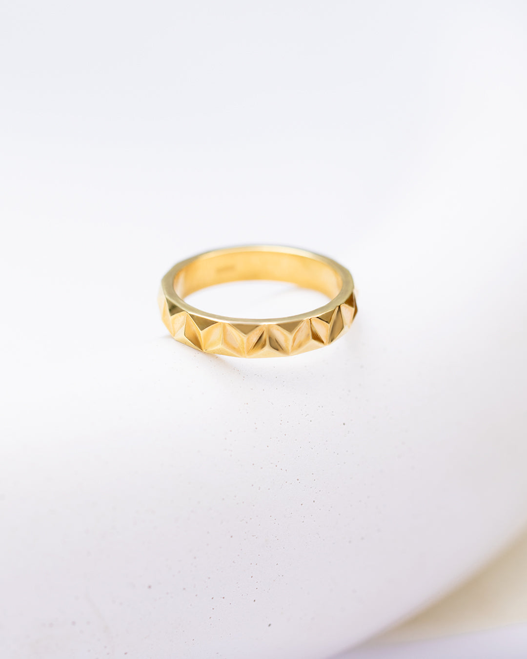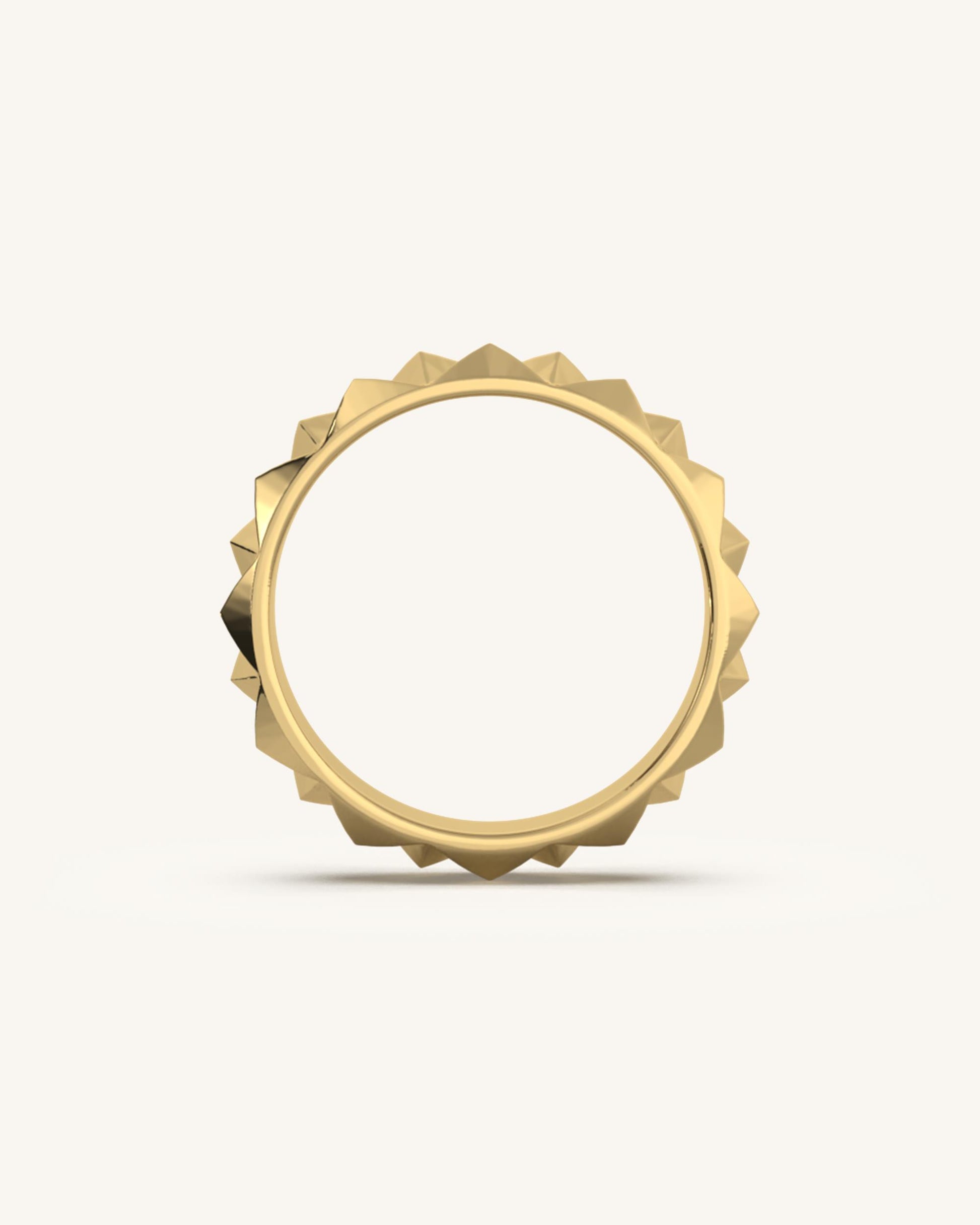 Crafted from 925 silver with a radiant gold tone. Finished with precision-cut geometric facets for an architectural edge.