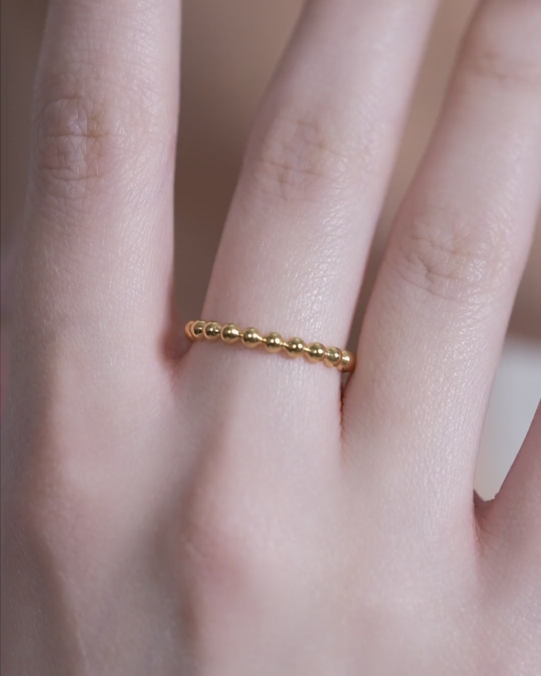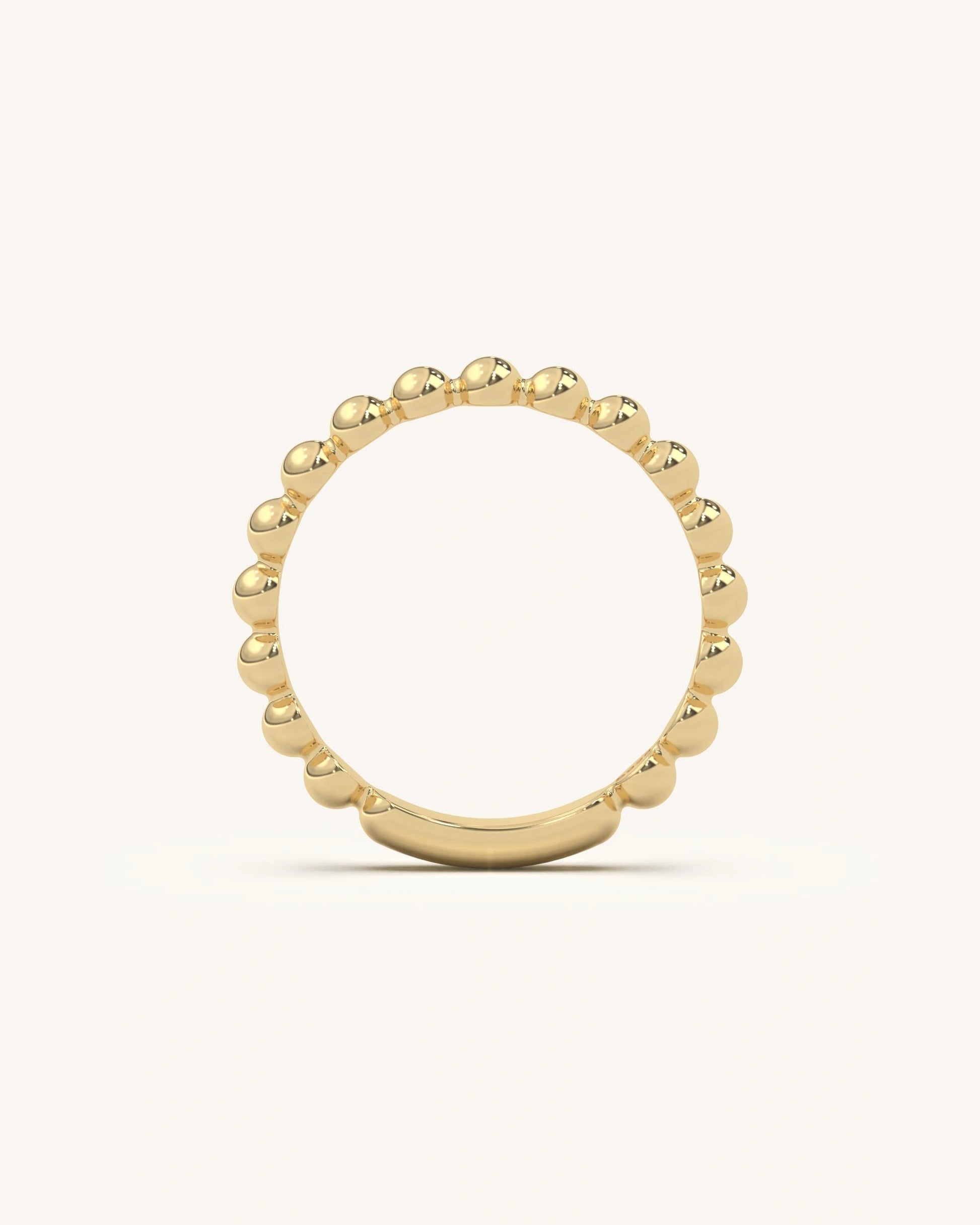 This ring features a smooth circular bead pattern arranged in a uniform loop. The surface is polished to give it a glossy shine, adding a clean and elegant finish.