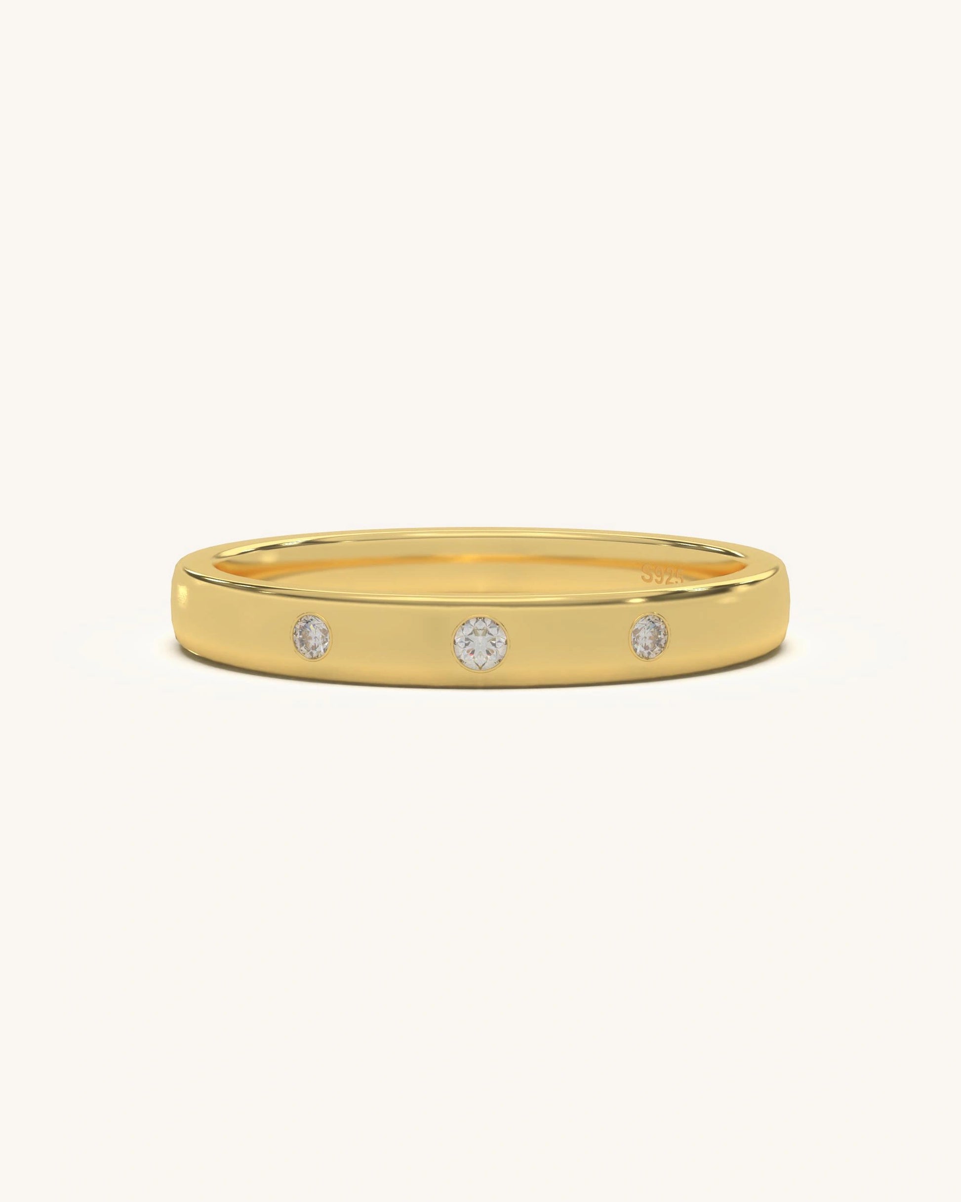 Made from 925 silver and finished in gold this sleek design includes moissanite diamonds for longlasting sparkle and elegance