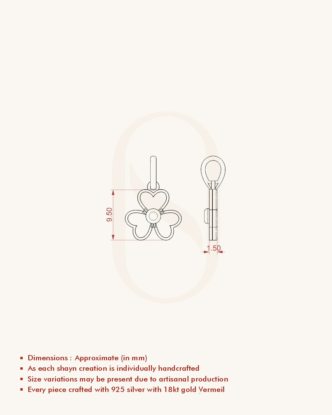 | Metal | 18KT Gold Vermeil (2.5 Microns Gold Layer on 925 Silver) |
