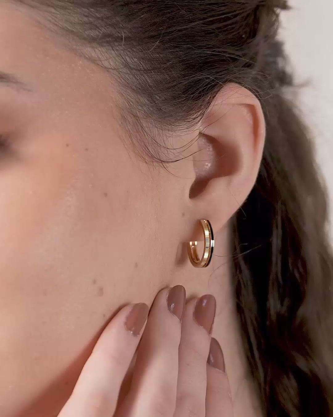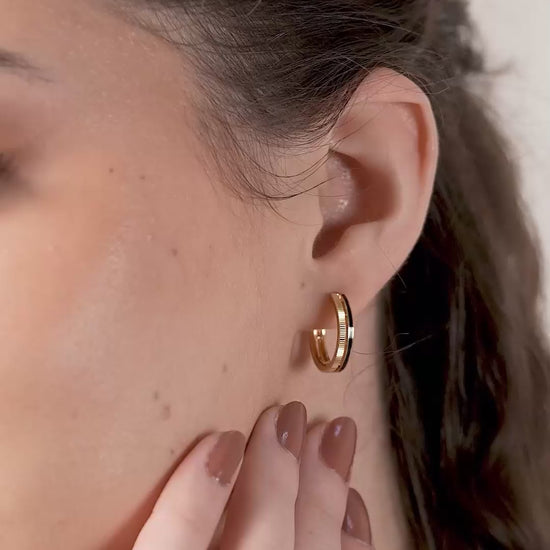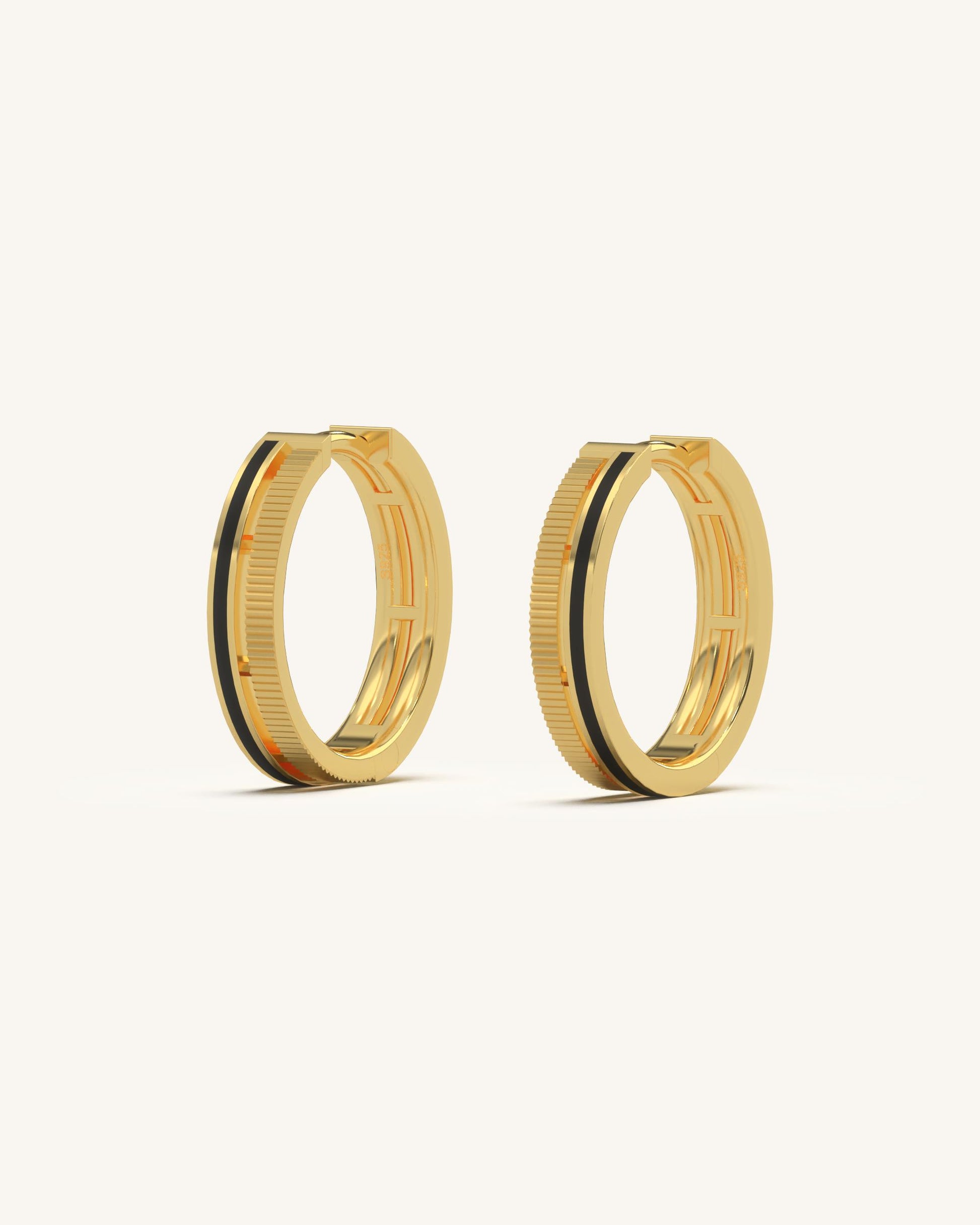 Modern hoops designed with fine linear grooves along the outer edges. The design feels bold yet smooth in its rounded proportions.