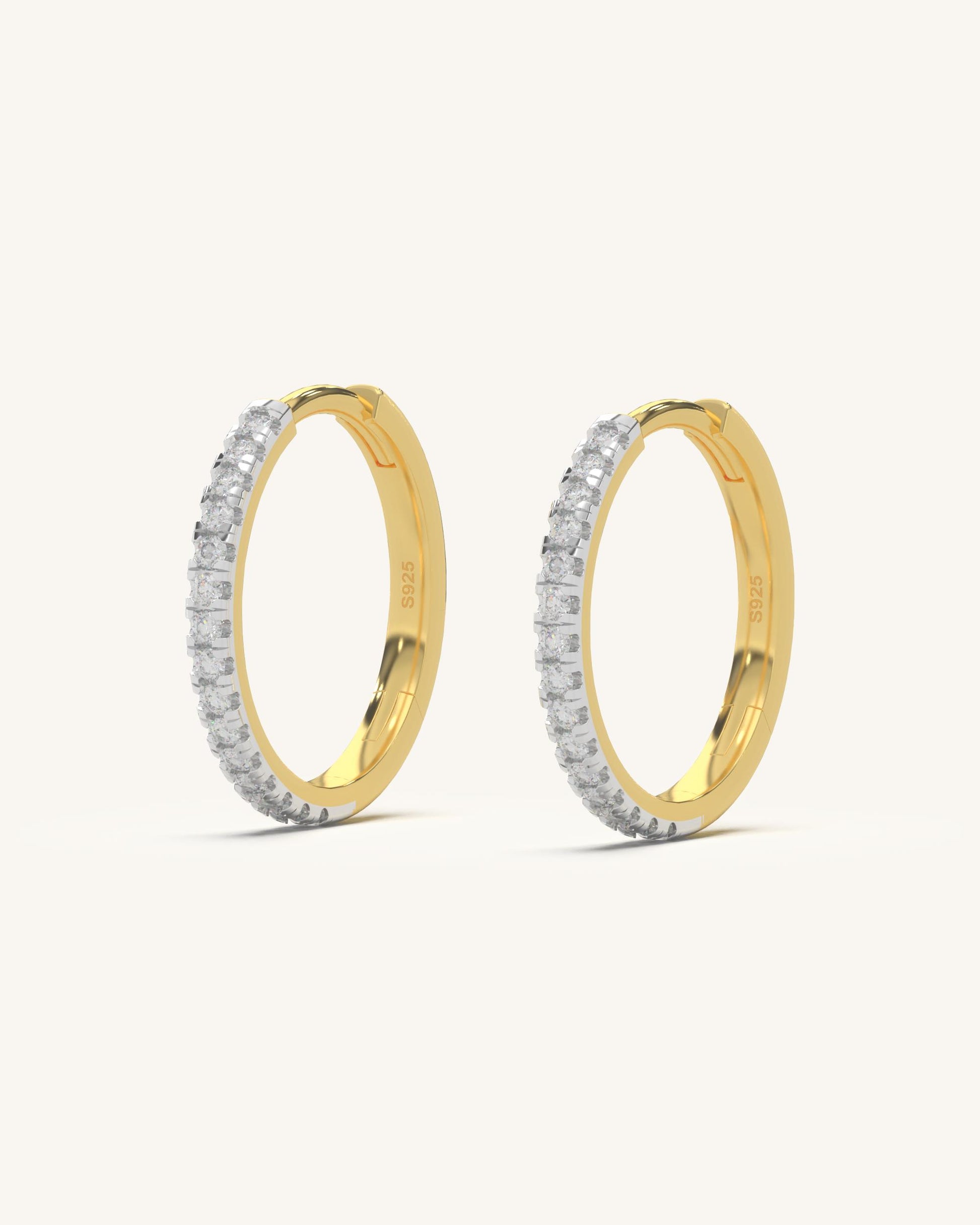 Composed of sterling 925 silver and moissanite stones. Gold base with white stone contrast enhances the elegance of the design.