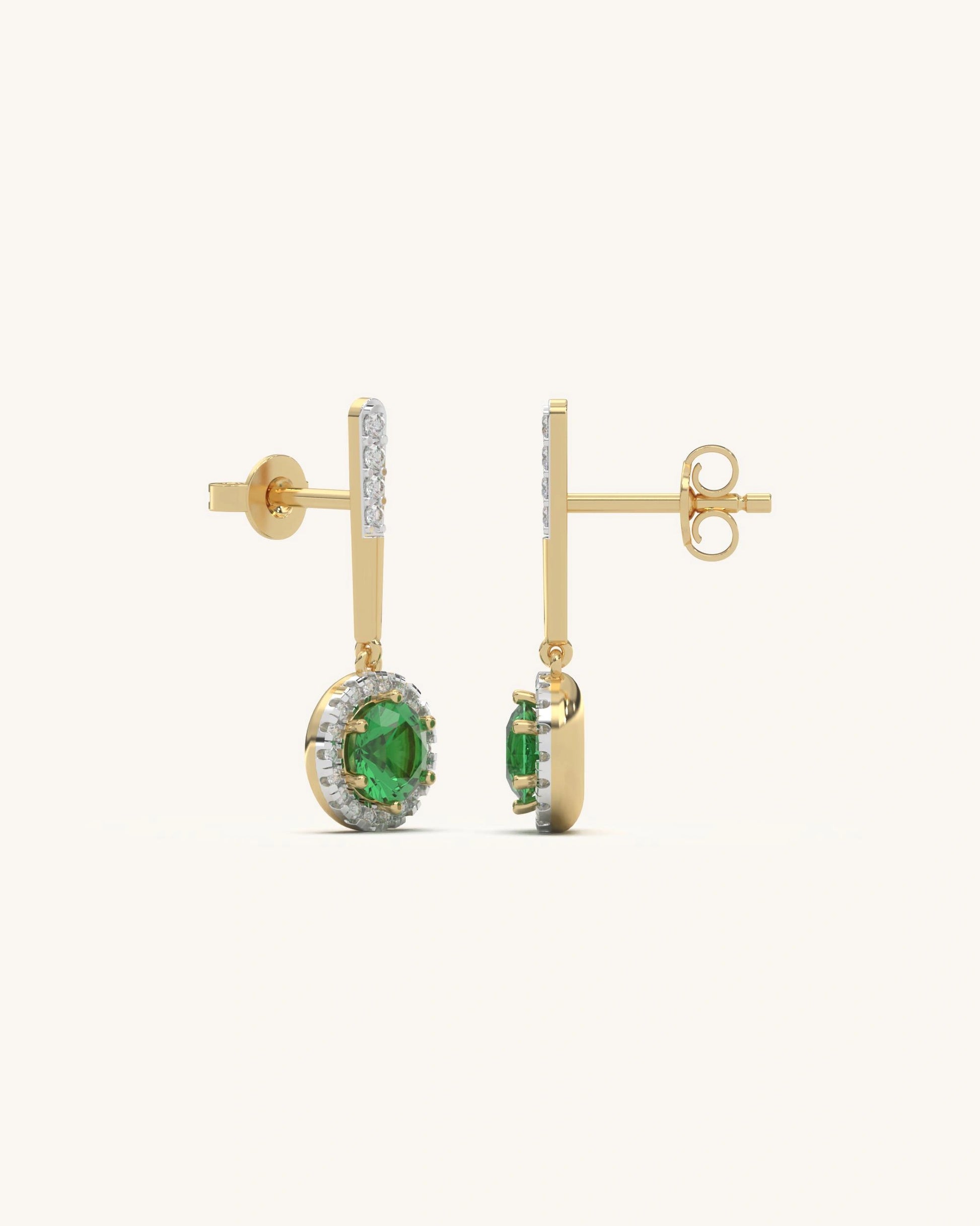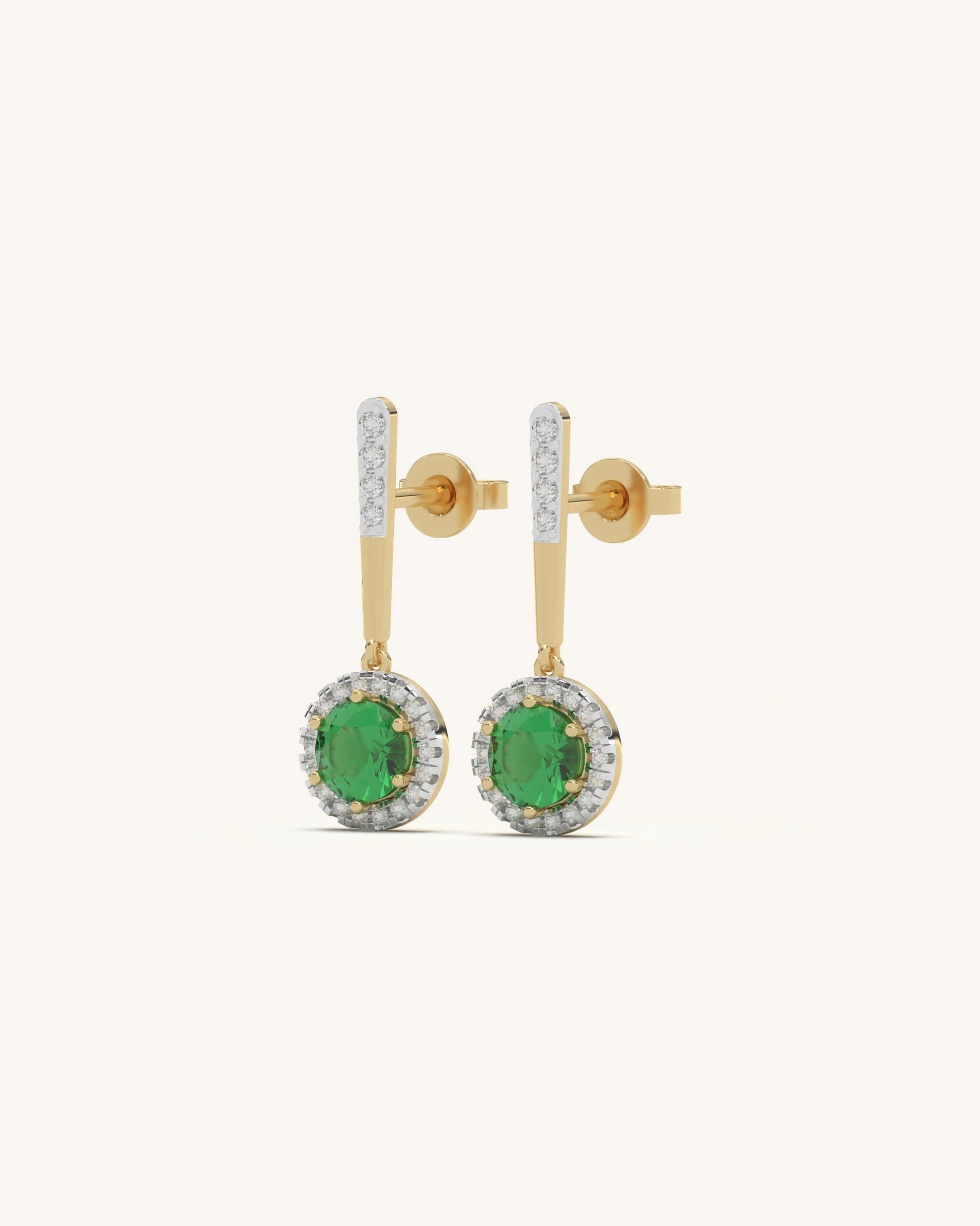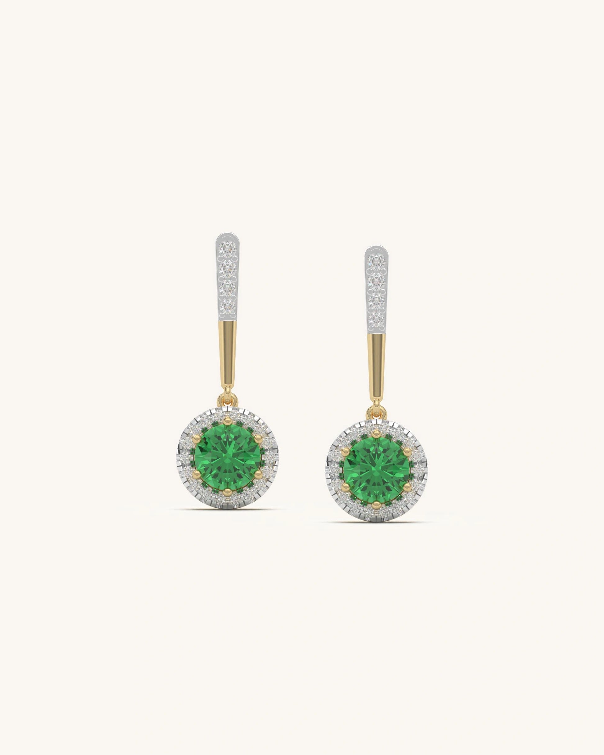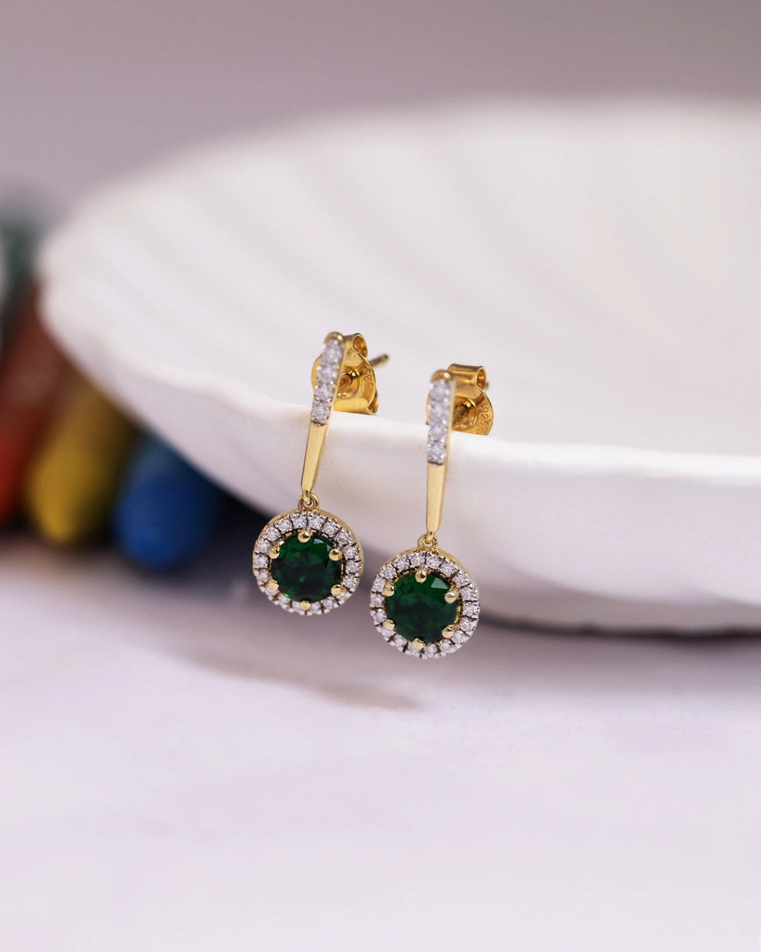 925 silver with moissanite halo and green center stone. Gold tone finish adds shine and sophistication.