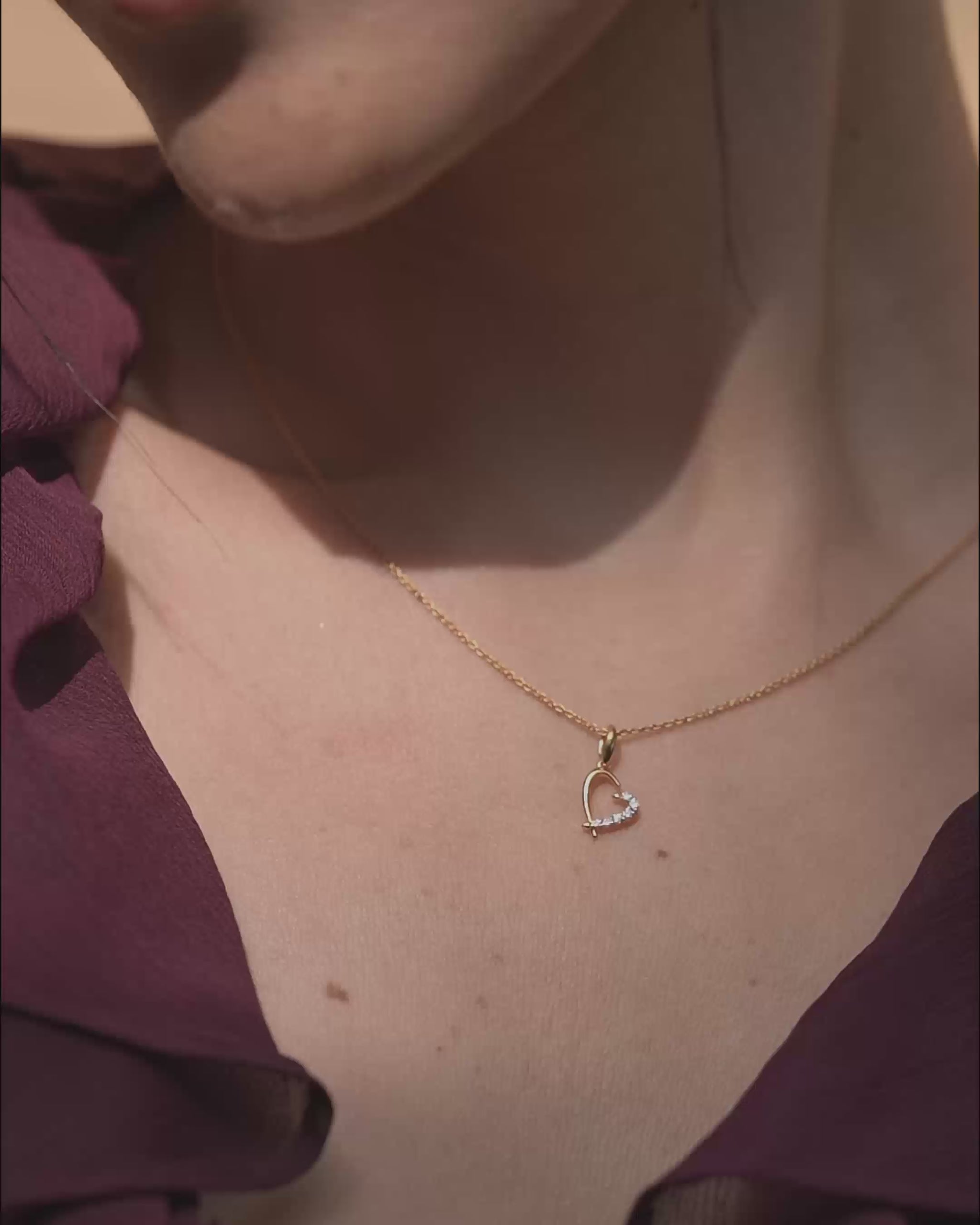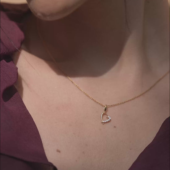A slim, asymmetrical heart forms the pendant of this piece, combining yellow metal on one side with sparkling moissanite on the other. A graceful bail completes the look.
