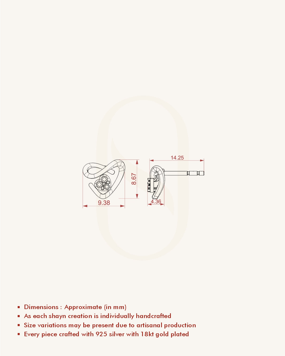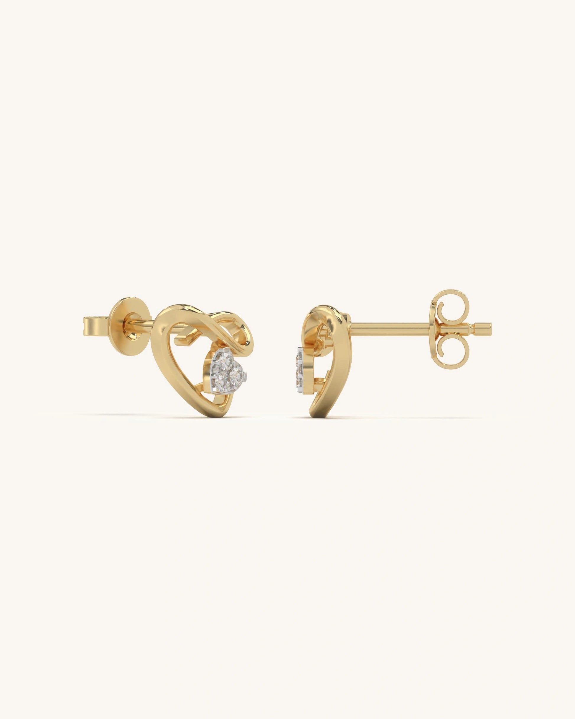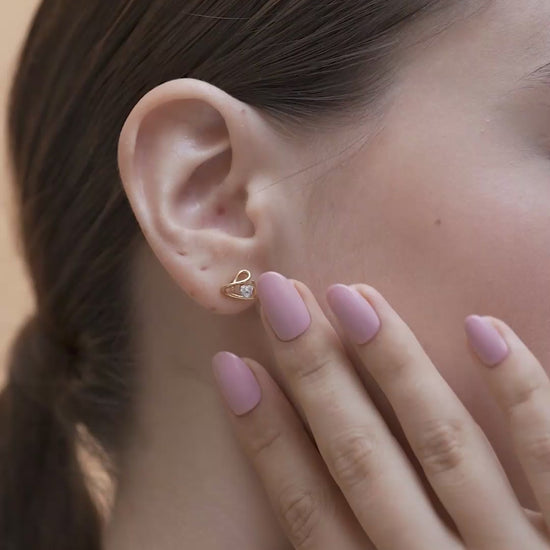 Petite heart studs featuring a twisted infinity shape around a diamond-like heart cluster. This symbol of love and forever makes for a heartfelt gift.