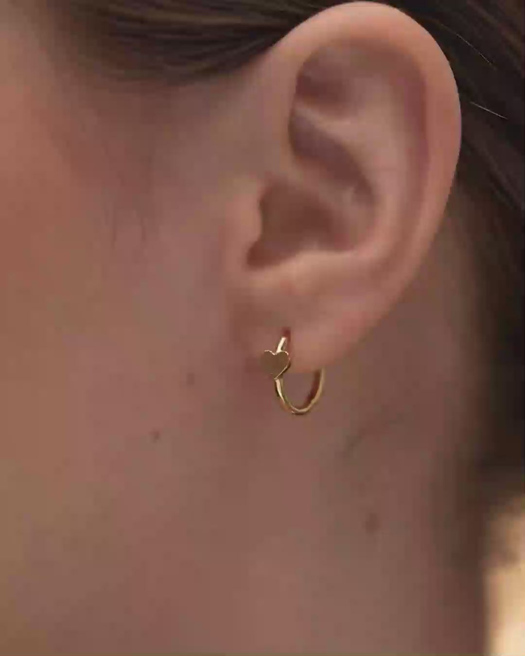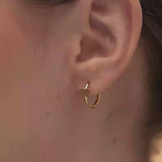 These modern mini hoops feature a fine heart charm with vertical stripe texture, offering subtle detail and charm. The rose gold tone adds warmth and softness, making them an ideal pick for everyday elegance with a hint of personality and flair.