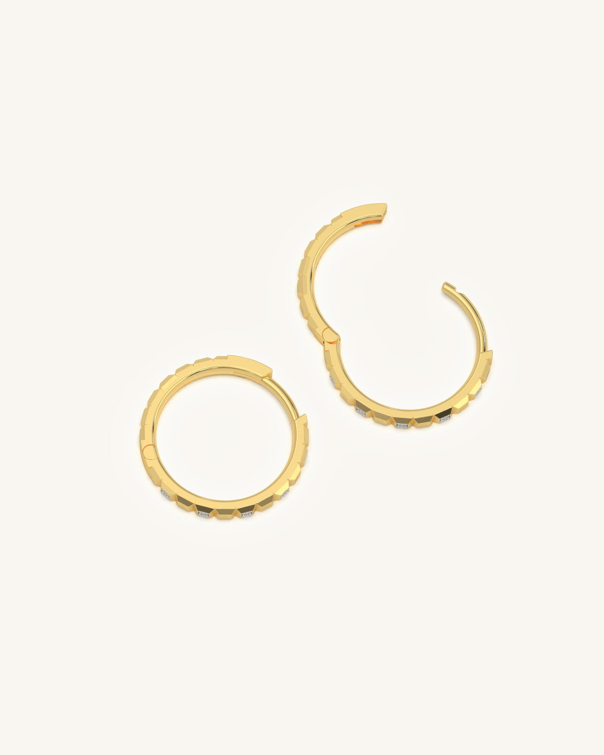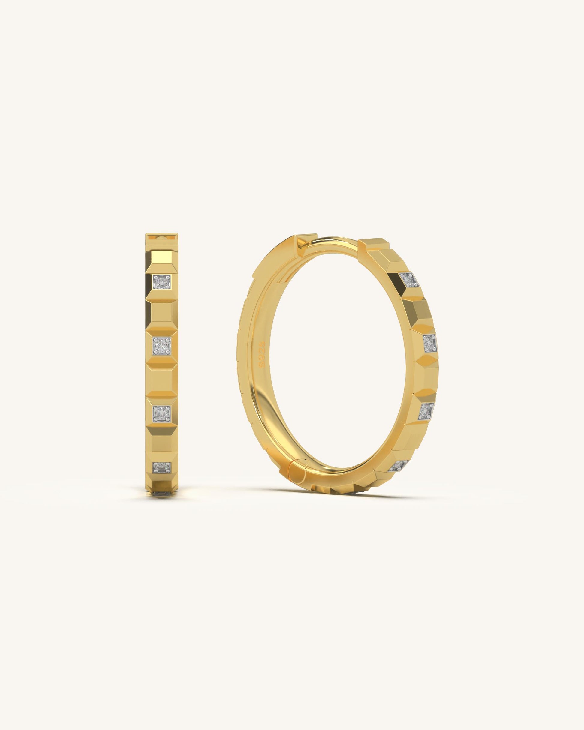 Crafted in 925 silver and polished in gold. Moissanite stones are strategically placed in angular sections to elevate elegance.
