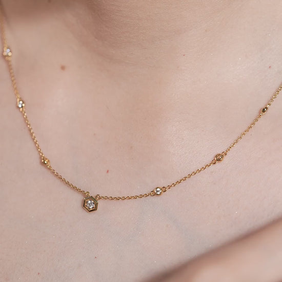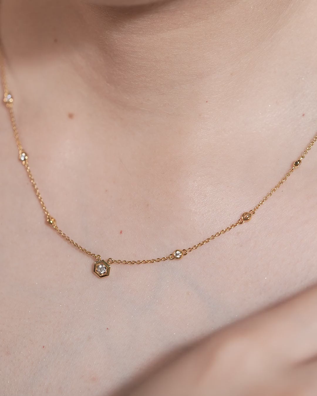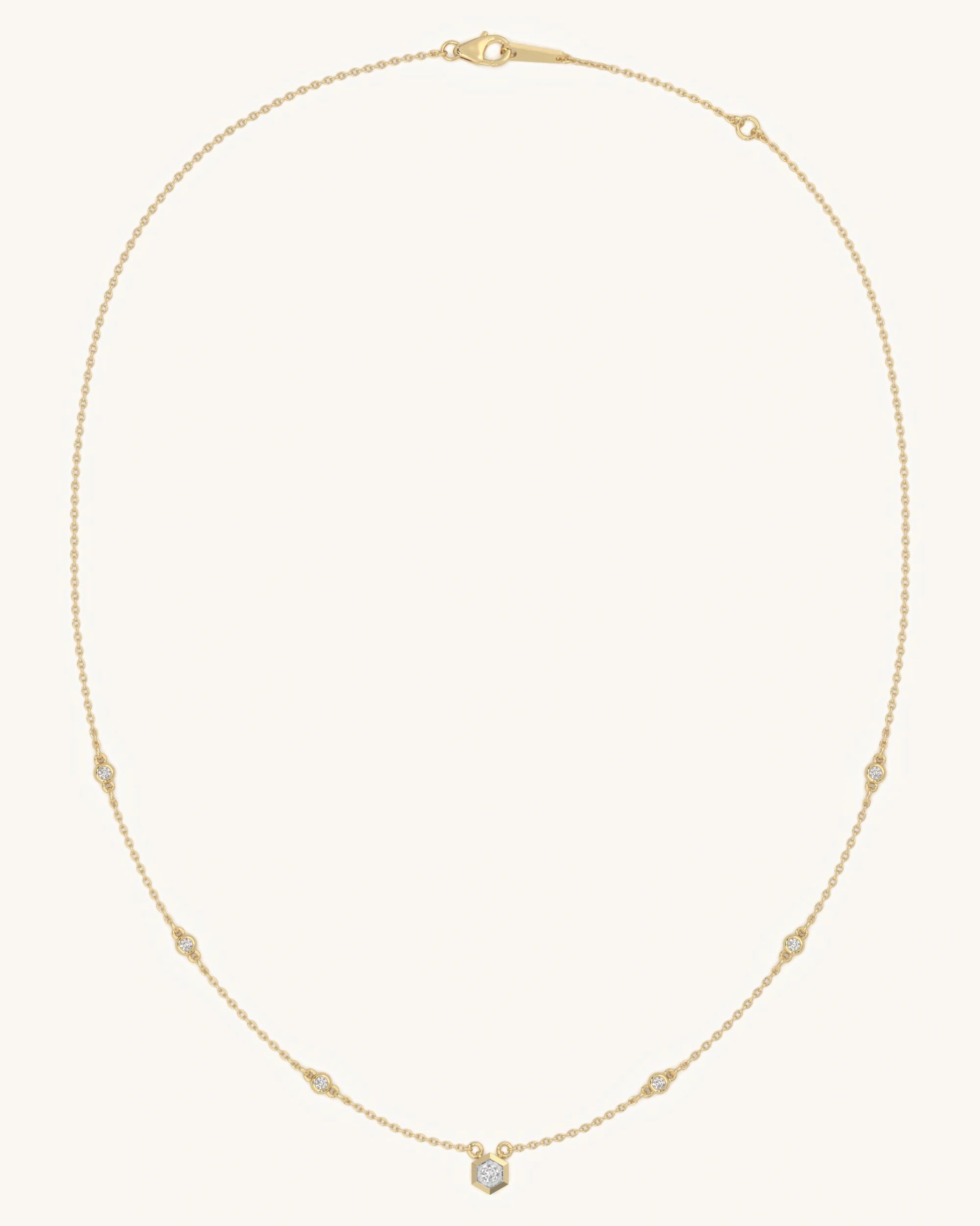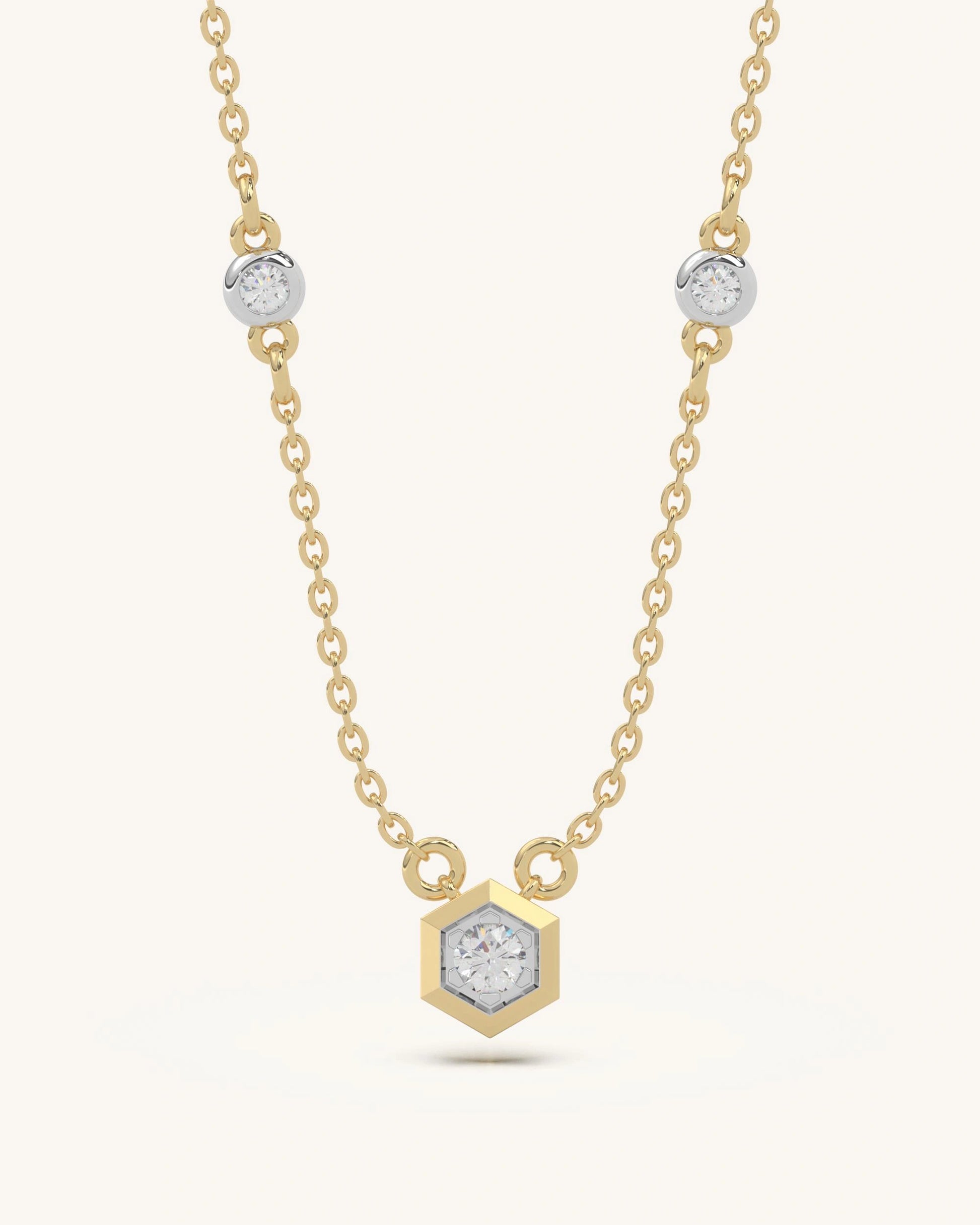 Expertly made with 925 silver and finished in high-polish gold, the necklace is adorned with premium moissanite diamonds. These ethically sourced stones offer exceptional brilliance and the hexagon detail gives it a contemporary twist.