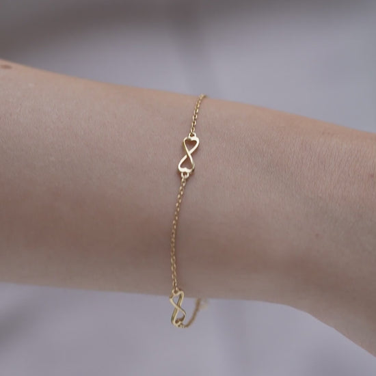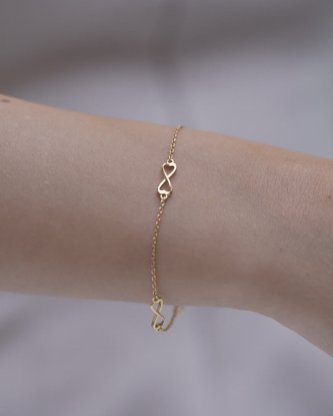 This minimalist bracelet highlights a central infinity motif created by two heart shapes, forming a continuous loop of love. Its symbolic charm and clean design make it an ideal everyday keepsake.