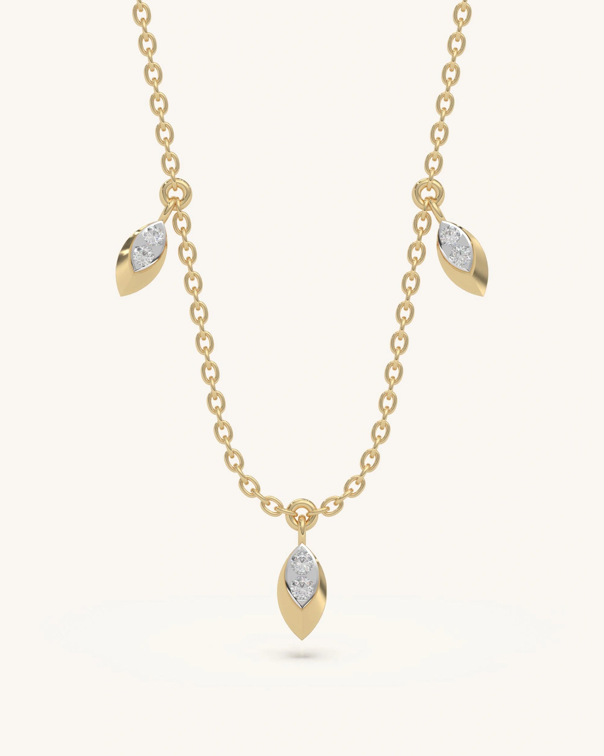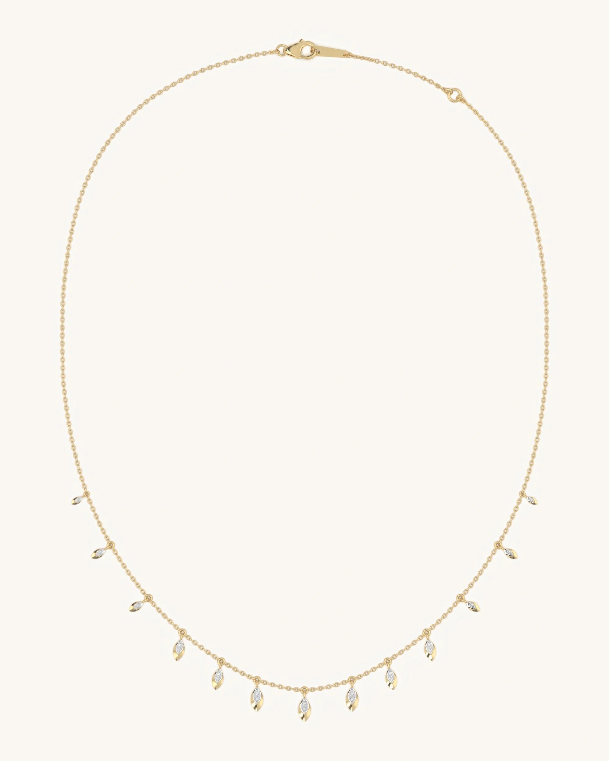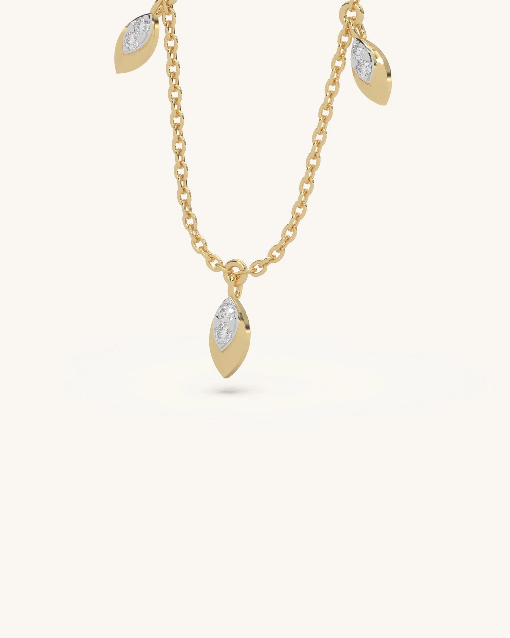 Made from fine 925 silver and layered in gold, each leaf is encrusted with a shimmering moissanite diamond. The intricate details and graceful form make it a Timeless accessory.